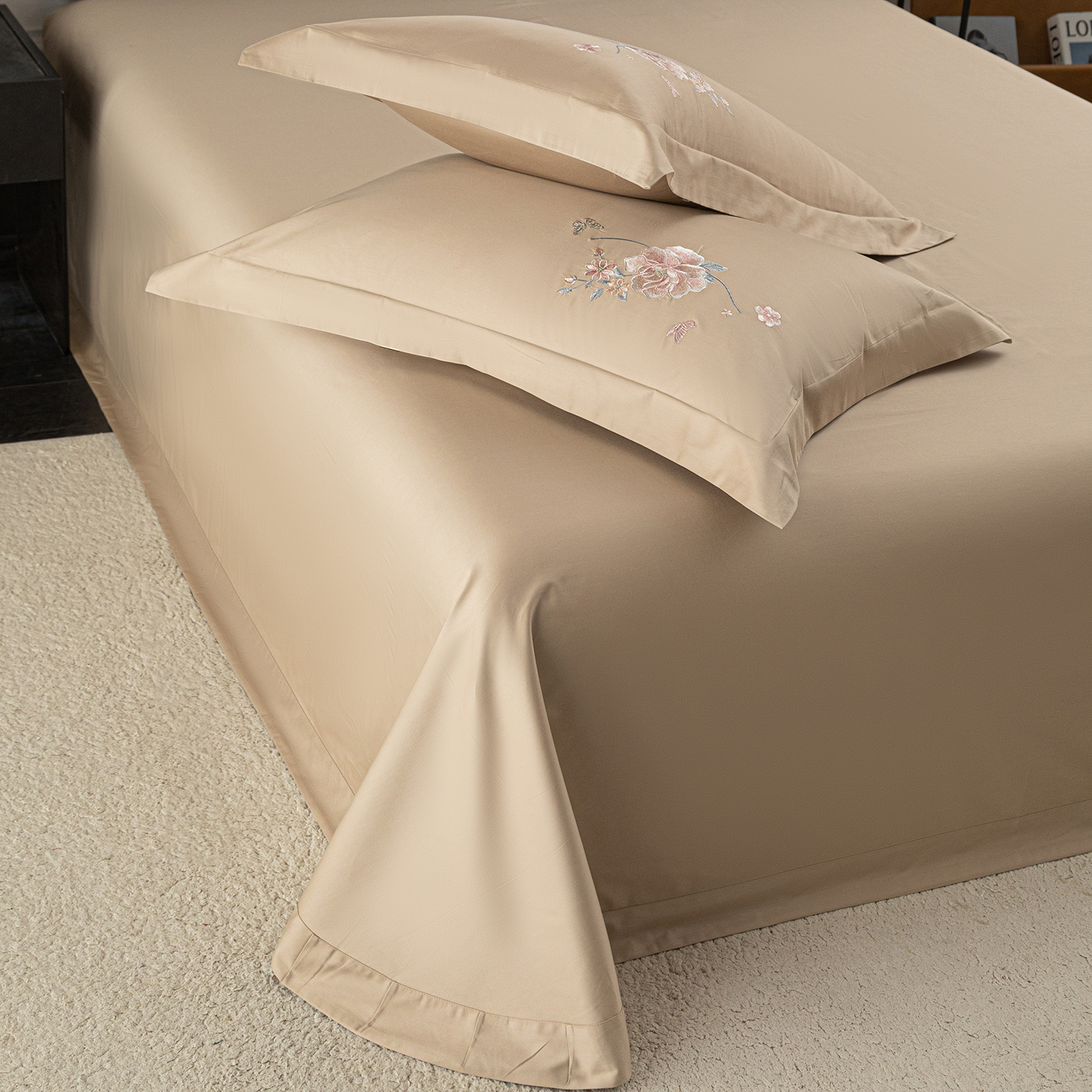 (总)莉迪娅 2026新款50s双股长绒棉纯色简约绣花床单三件套--花开牡丹系列