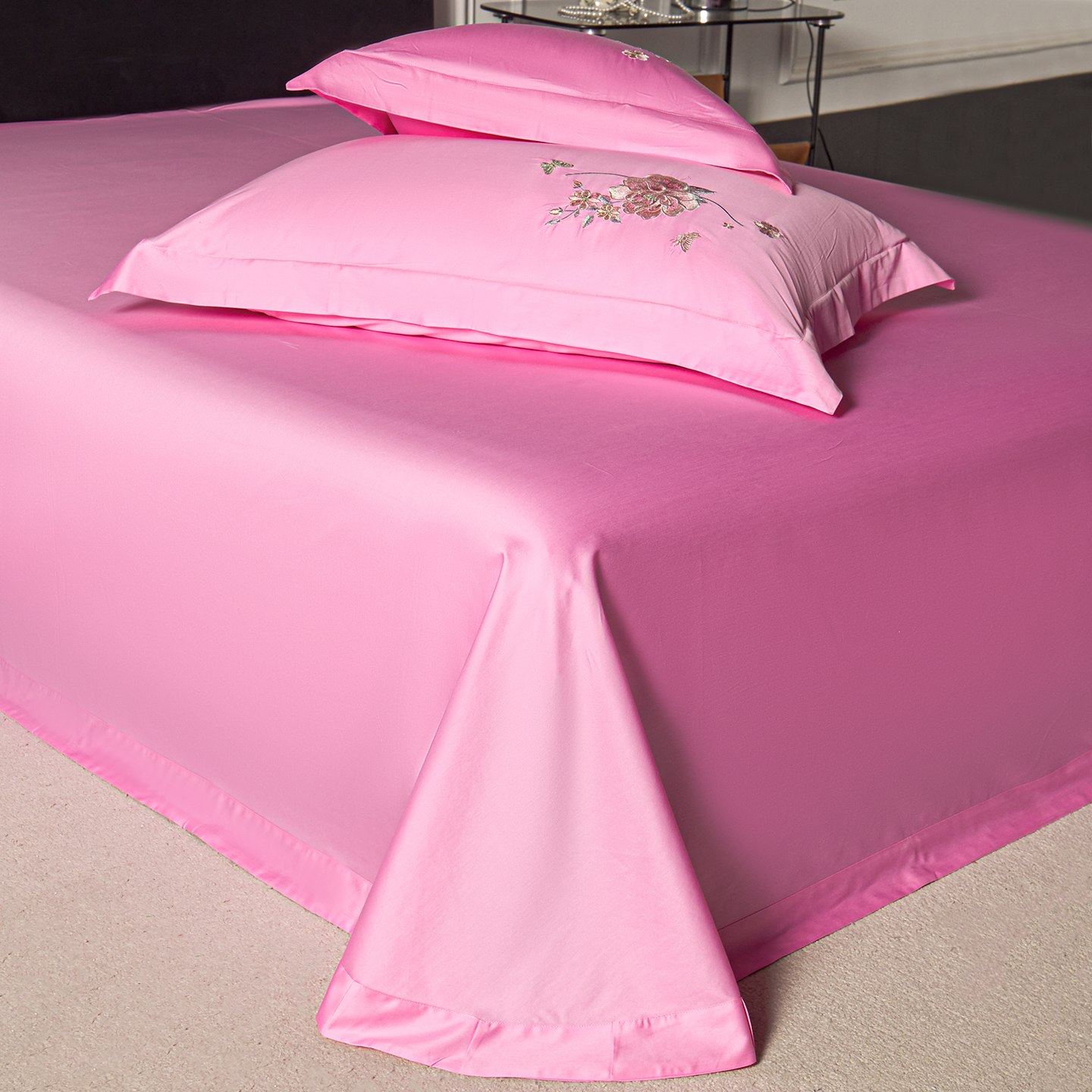 (总)莉迪娅 2026新款50s双股长绒棉纯色简约绣花床单三件套--玫瑰恋人系列,中国红,樱红玉,魅惑紫,爱玛橙,粉豆沙,富贵灰,高级灰,海藻蓝,姜黄,经典咖,卡其,孔雀兰,抹茶绿,奶油黄,水银灰,水云绿,仙女粉,香槟金,香妃玉,香芋紫,珍珠白