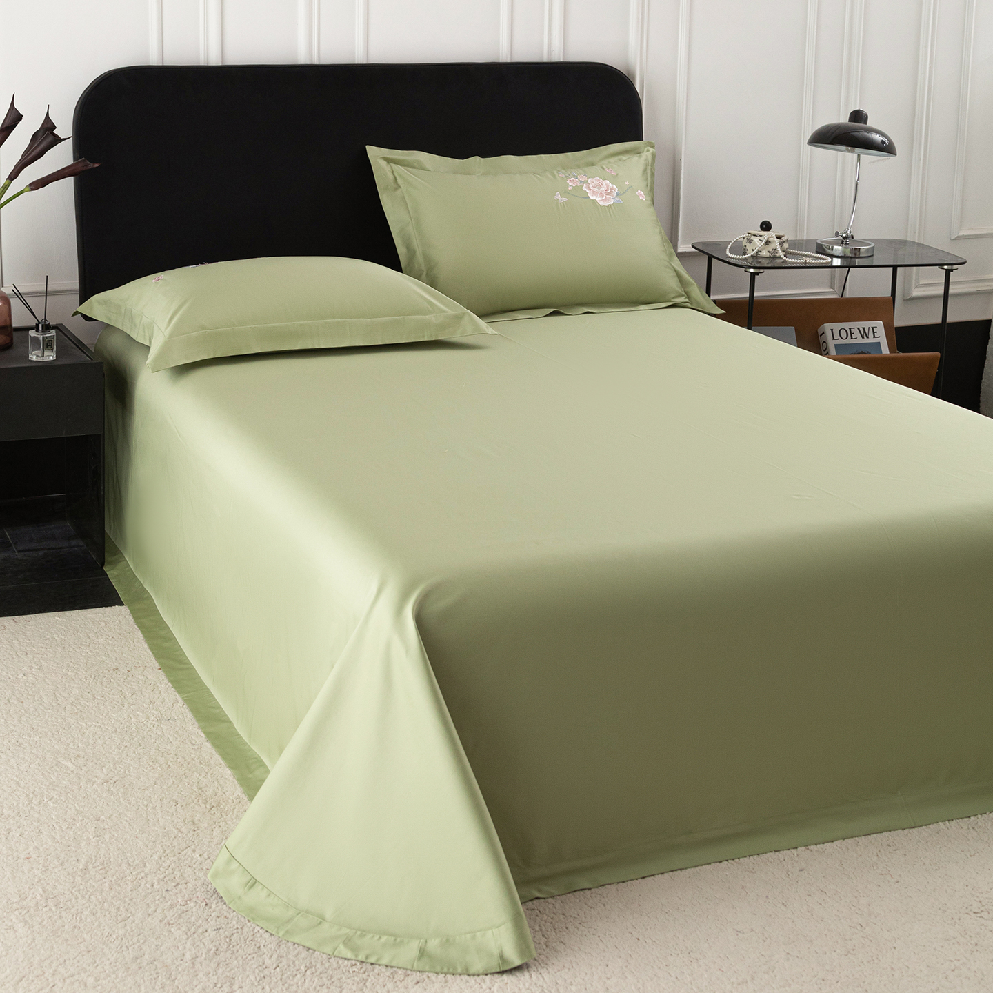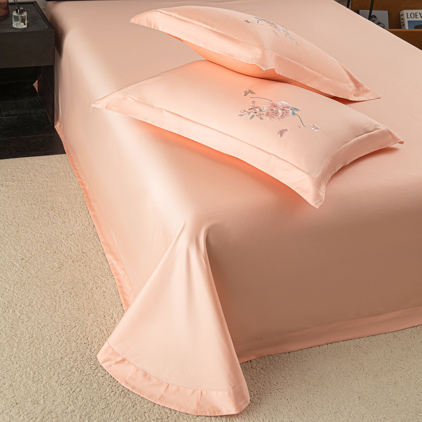 (总)莉迪娅 2026新款50s双股长绒棉纯色简约绣花床单三件套--花开牡丹系列,中国红牡丹,粉豆沙牡丹,樱红玉牡丹,爱玛橙牡丹,富贵灰牡丹,高级灰牡丹,海藻蓝牡丹,姜黄牡丹,经典咖牡丹,卡其牡丹,孔雀兰牡丹,魅惑紫牡丹,抹茶绿牡丹,奶油黄牡丹,水银灰牡丹,水云绿牡丹,仙女粉牡丹,香槟金牡丹,香妃玉牡丹,香芋紫牡丹,珍珠白牡丹