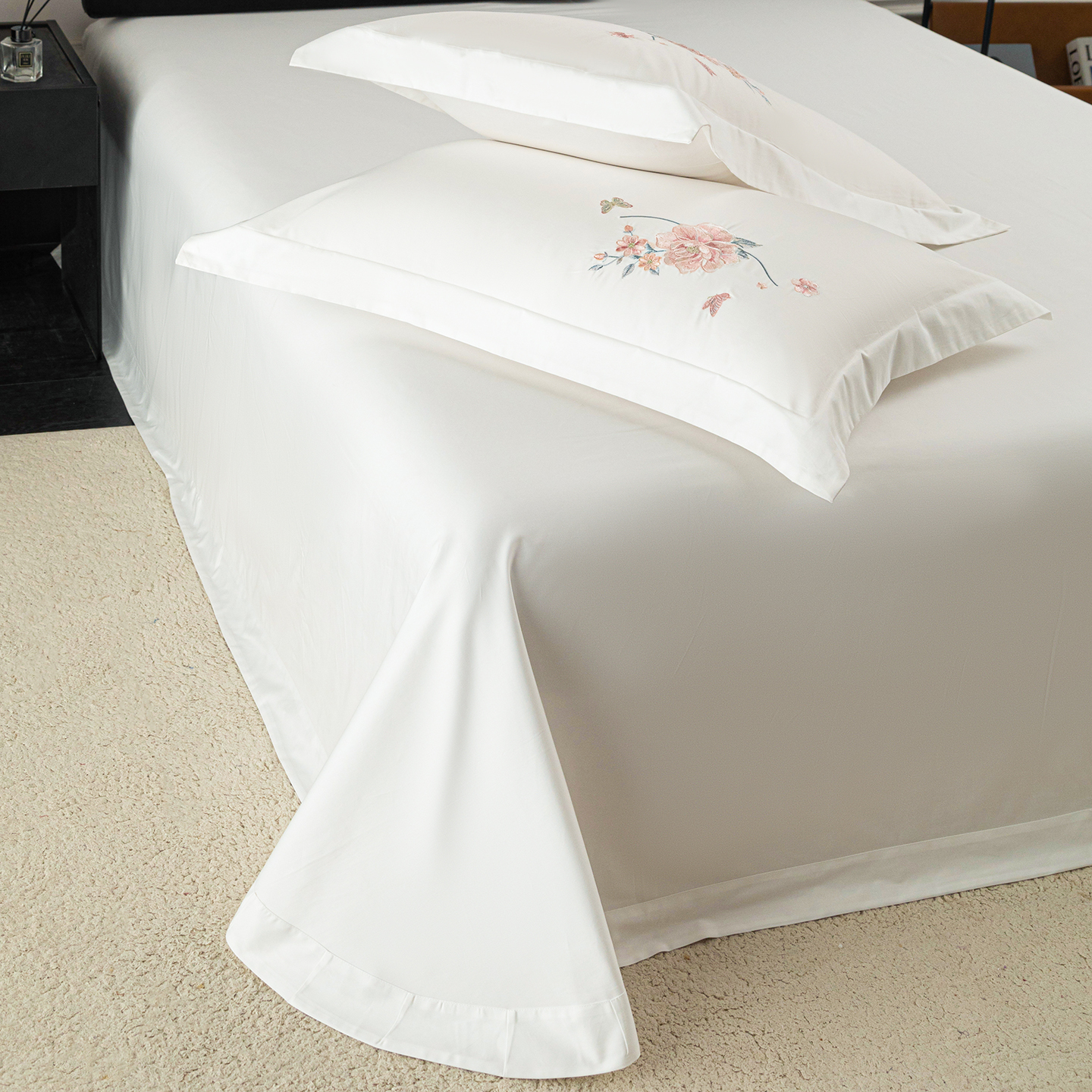 • 91家纺网 家纺一手货源 找家纺 (总)莉迪娅 2026新款50s双股长绒棉纯色简约绣花床单三件套--玫瑰恋人系列,中国红,樱红玉,魅惑紫,爱玛橙,粉豆沙,富贵灰,高级灰,海藻蓝,姜黄,经典咖,卡其,孔雀兰,抹茶绿,奶油黄,水银灰,水云绿,仙女粉,香槟金,香妃玉,香芋紫,珍珠白