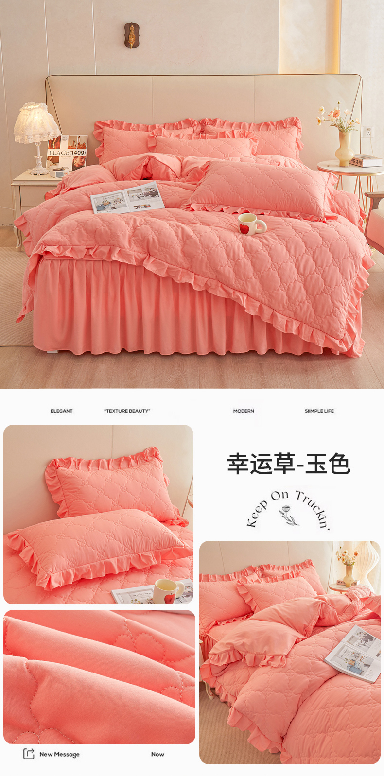当前位置: 91家纺网 > 商品网购 > 床品套件 > 四件套 > 化纤普通四件套 > 怡源梦 2026新款幸运草夹棉床裙四件套 幸运草-米黄