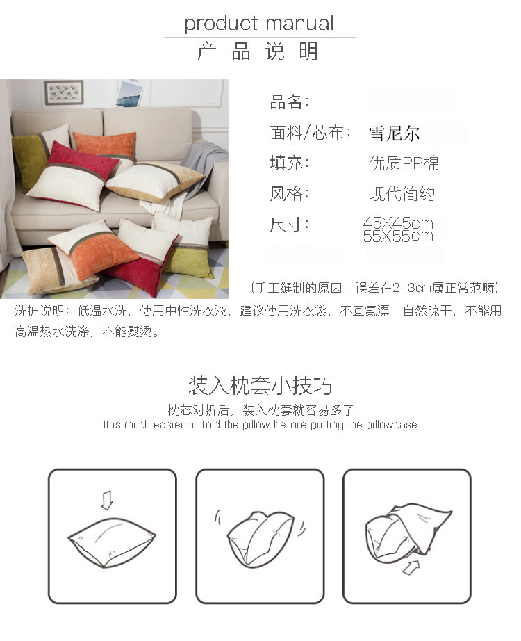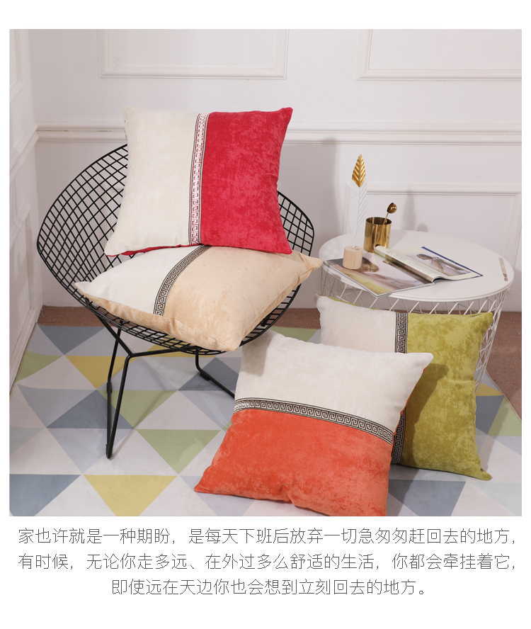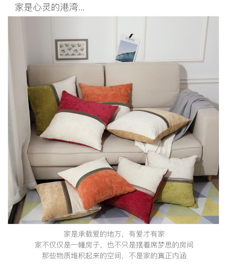 商品名称:(总)希诺家居 中式简约雪尼尔拼接撞色沙发抱枕靠垫