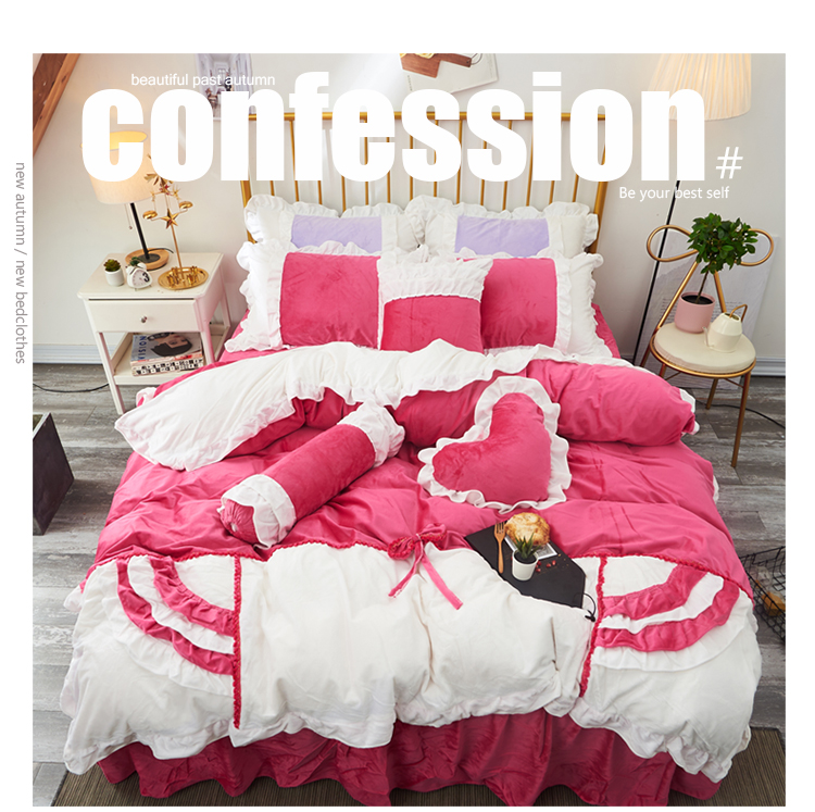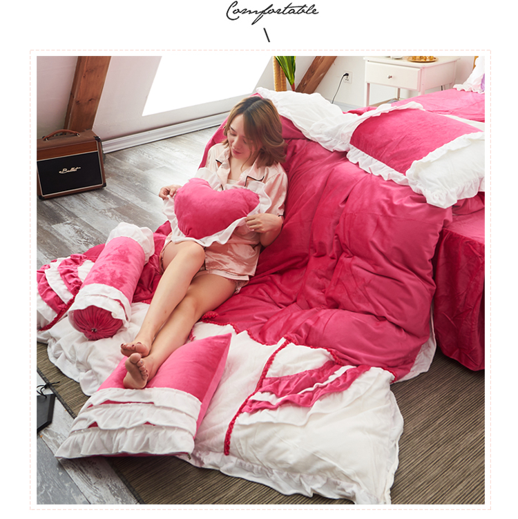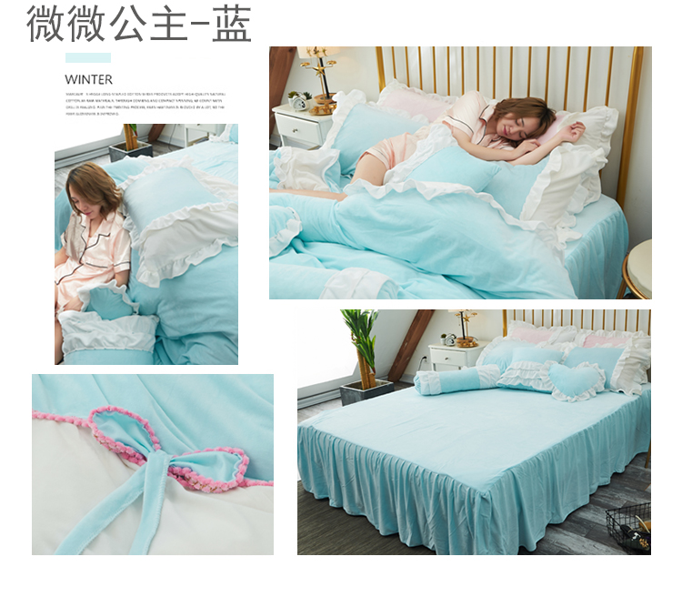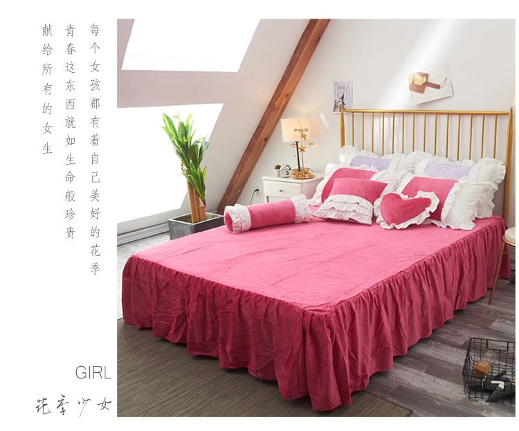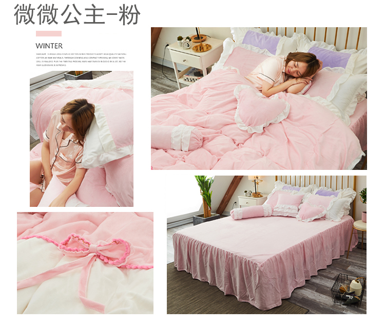 当前位置: 91家纺网 > 商品网购 > 床品套件 > 四件套 > 水晶绒四件套 > 淑女公社 秋冬新款水晶绒微微公主系列床裙四件套微微公主-玫红