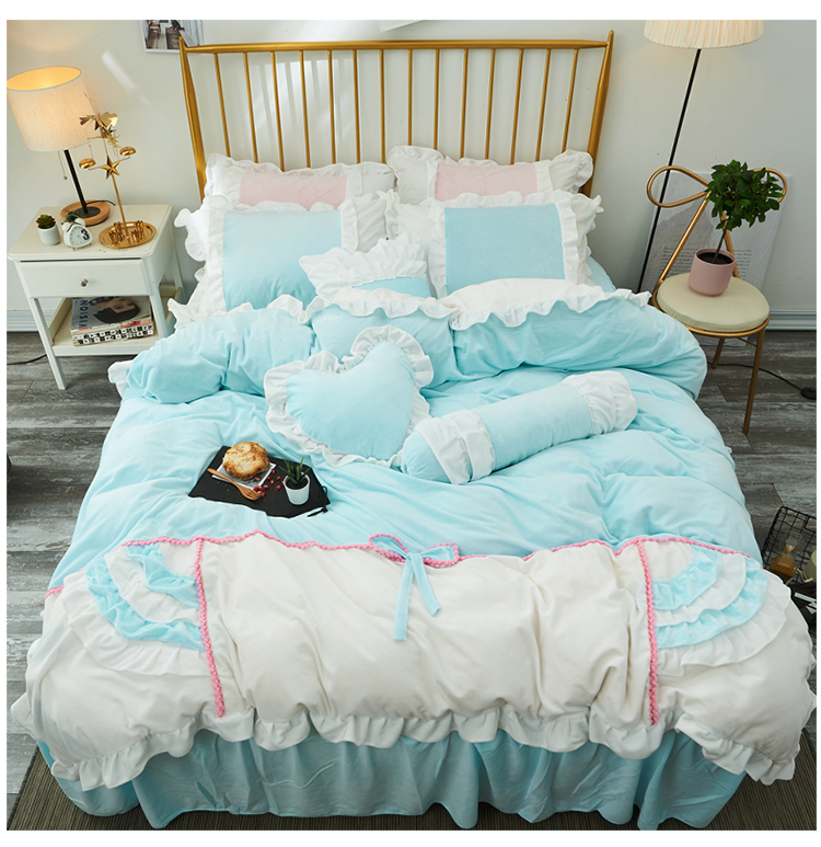 备注:其他尺寸: 1.8床裙款被套加大 被套220*240CM一个 床裙180*200CM 高45CM一个 单人枕48*74CM 两只