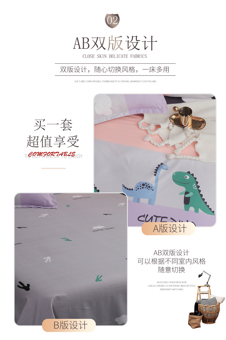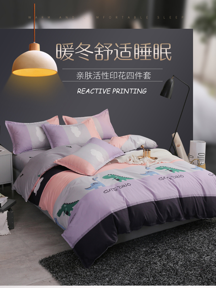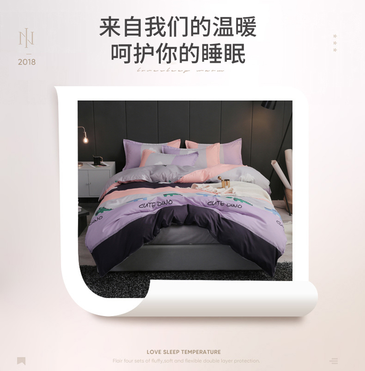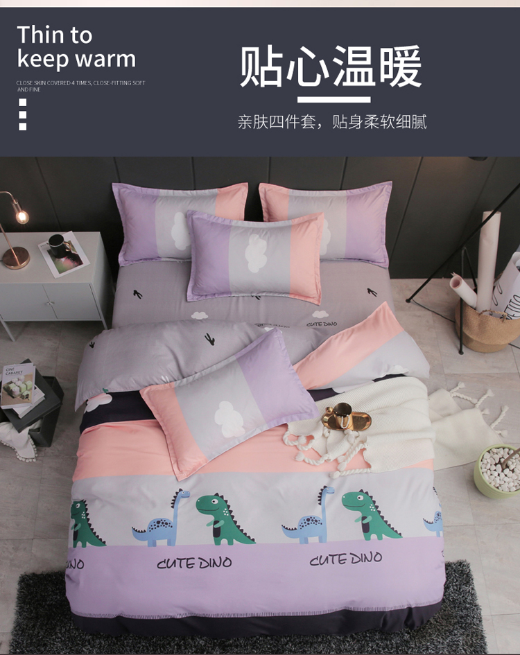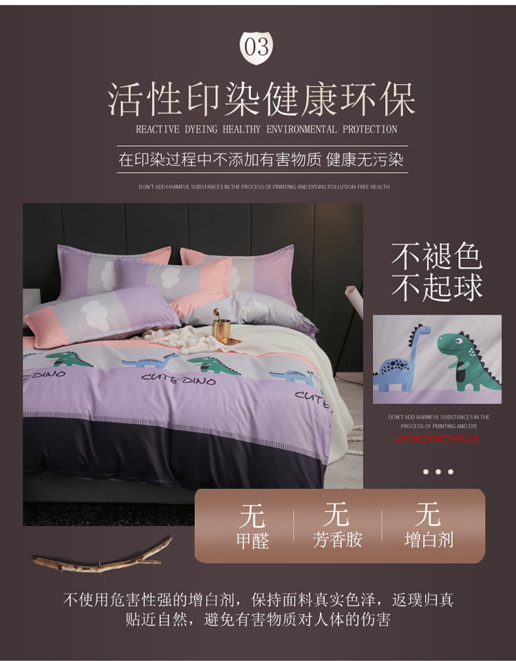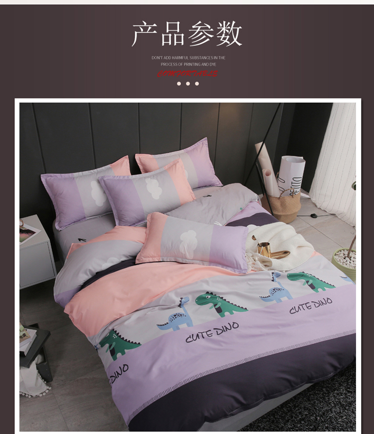 米粒家纺 2018新品芦荟棉四件套 恐龙乐园