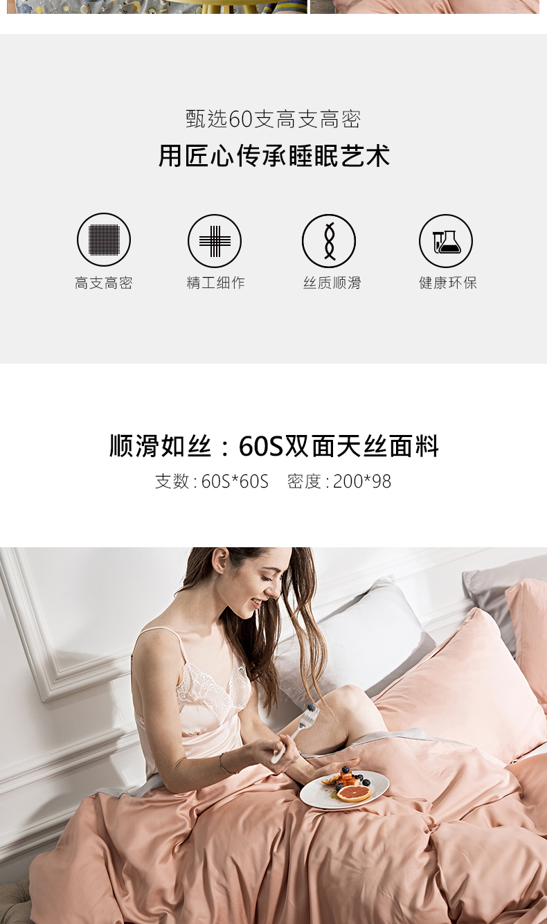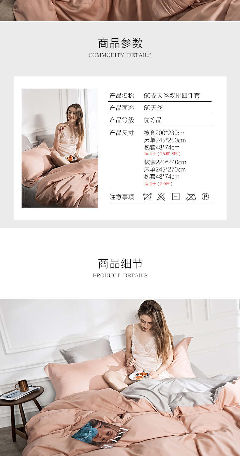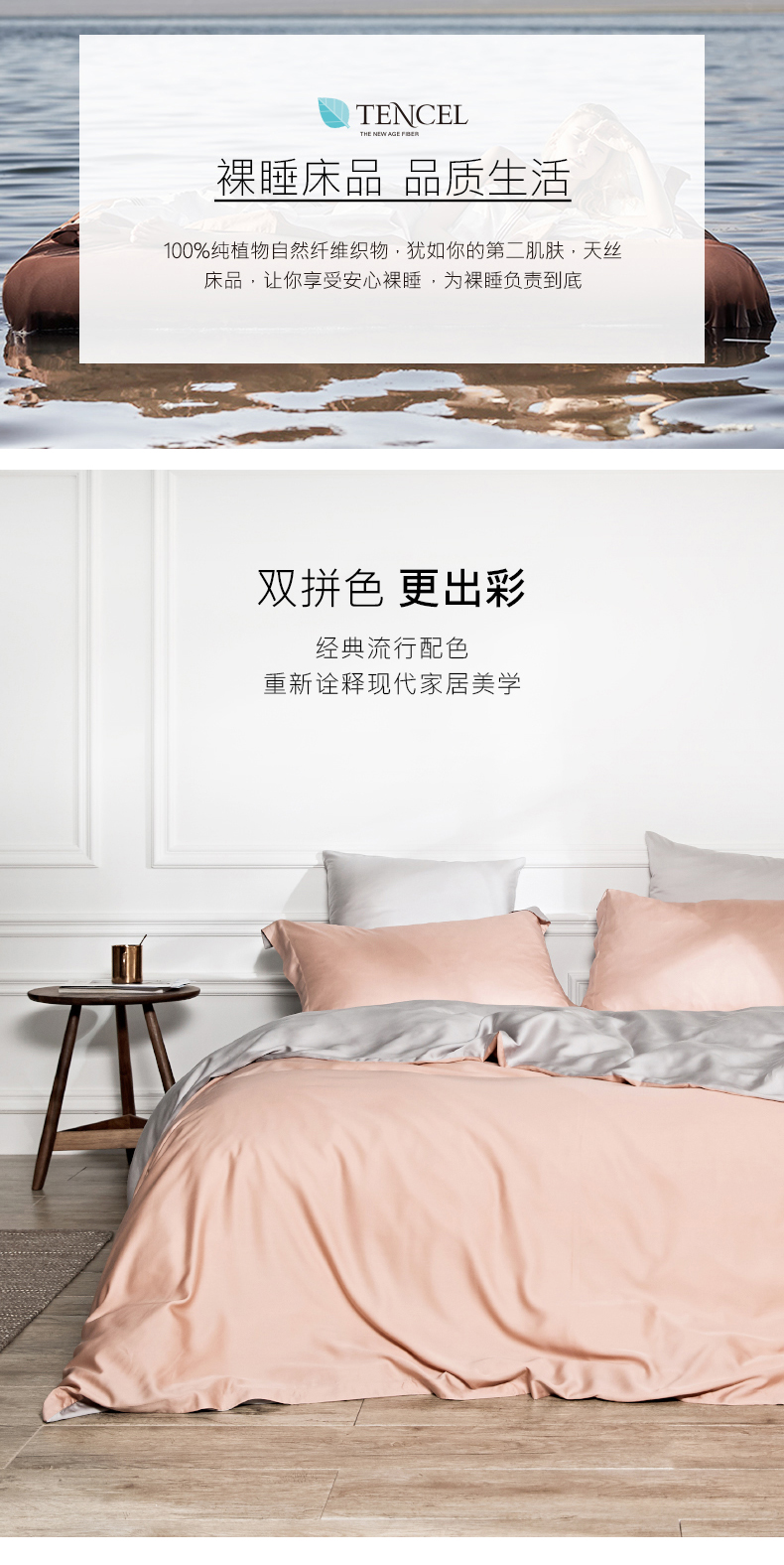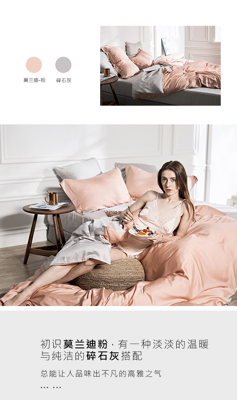 商品名称:涞澳 2019新款60天丝双拼套件 灰粉