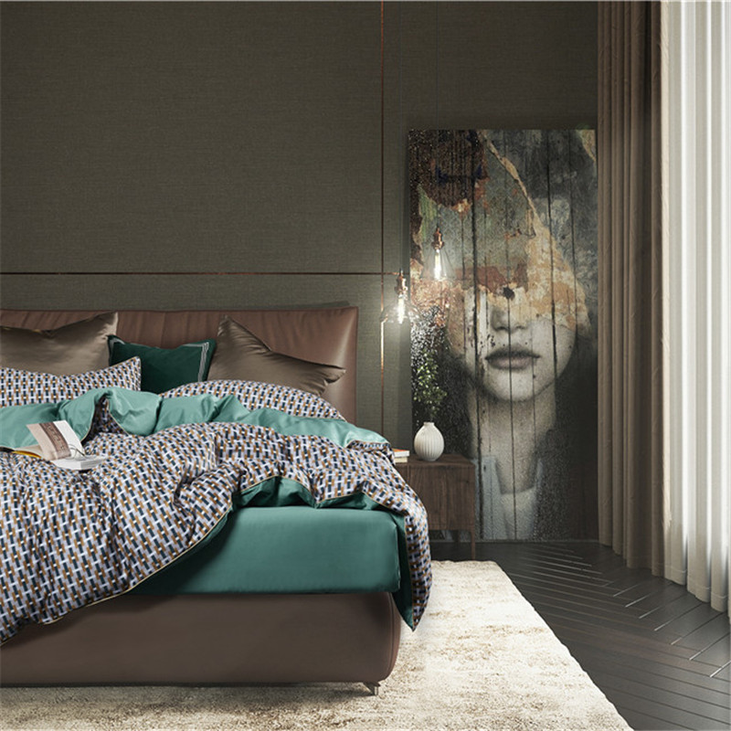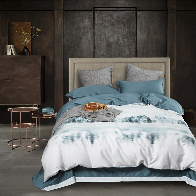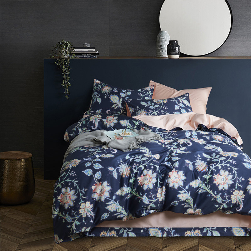 (总)优然居2020新款100支婴儿暖绒棉轻奢风刺绣四件套,大地黄加藏青,复古咖青,轻奢粉灰,霜绿大地色,霜绿复古色