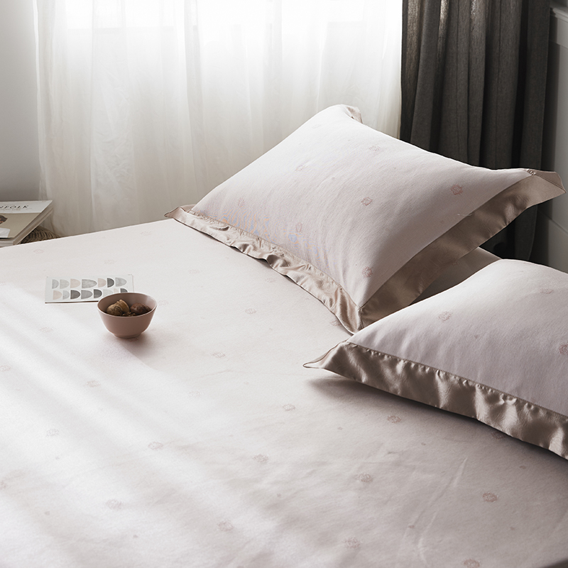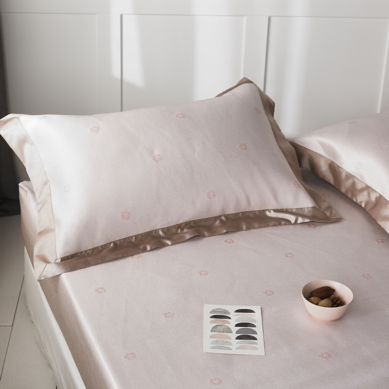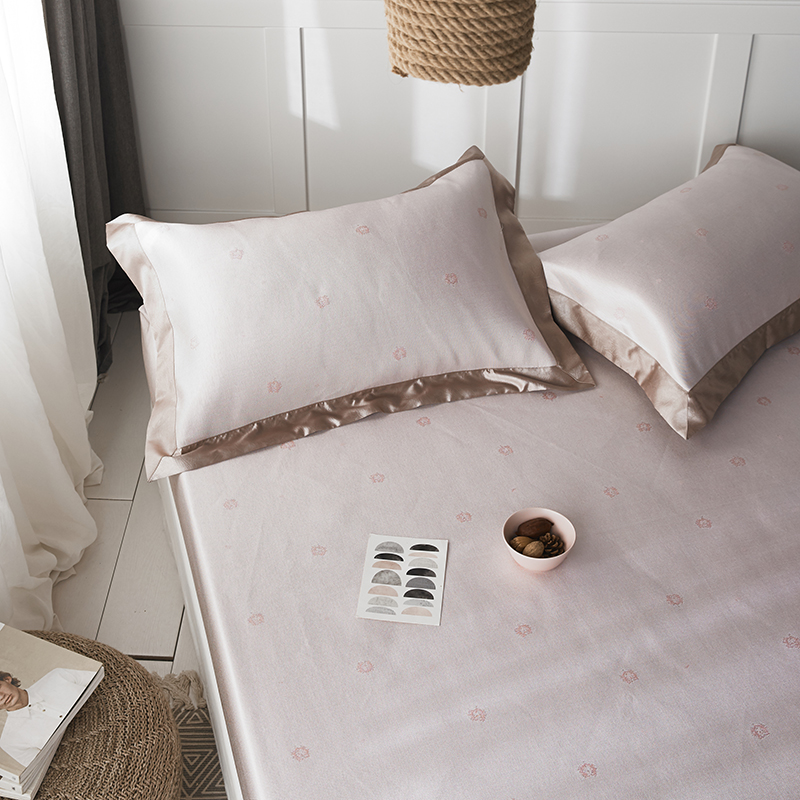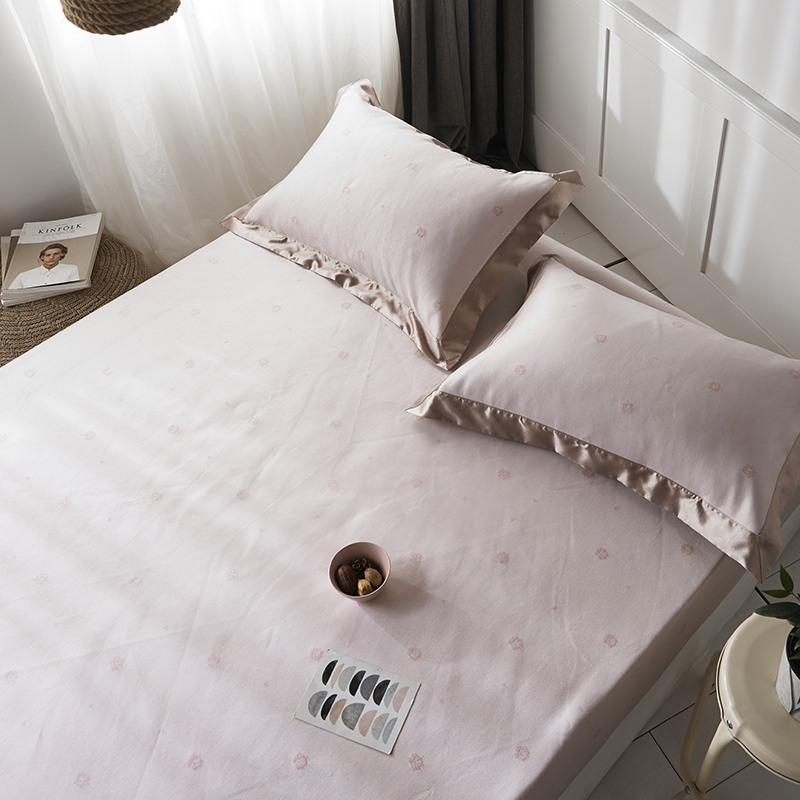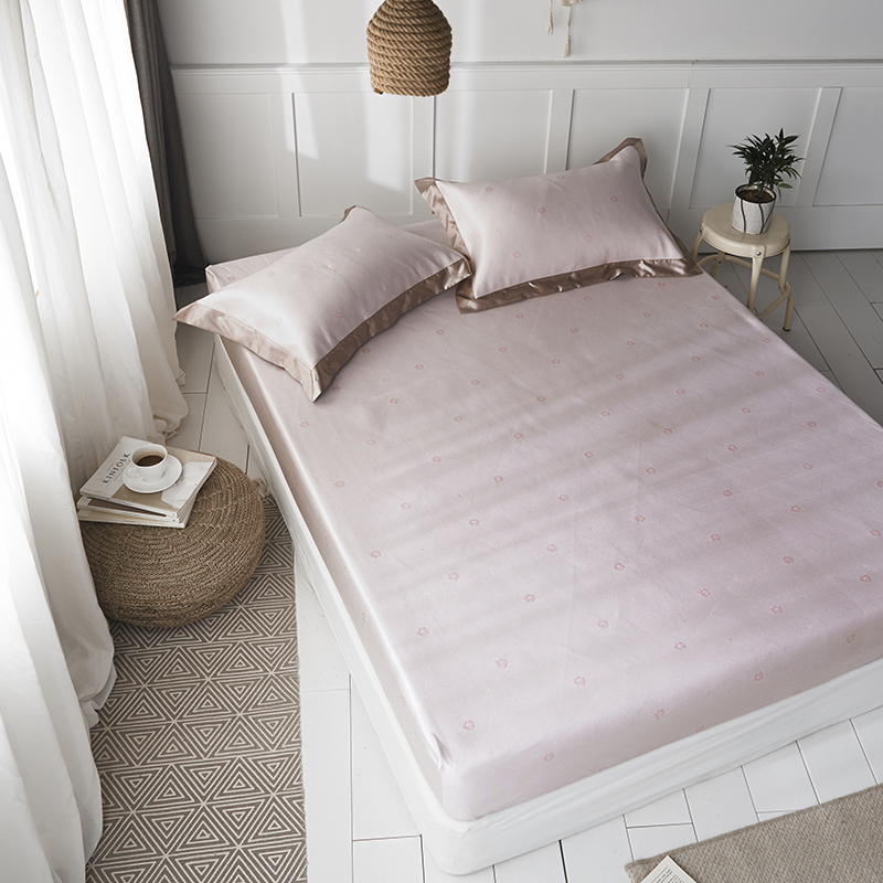 本希 提花床笠款水洗养生席三件套 粉色点点