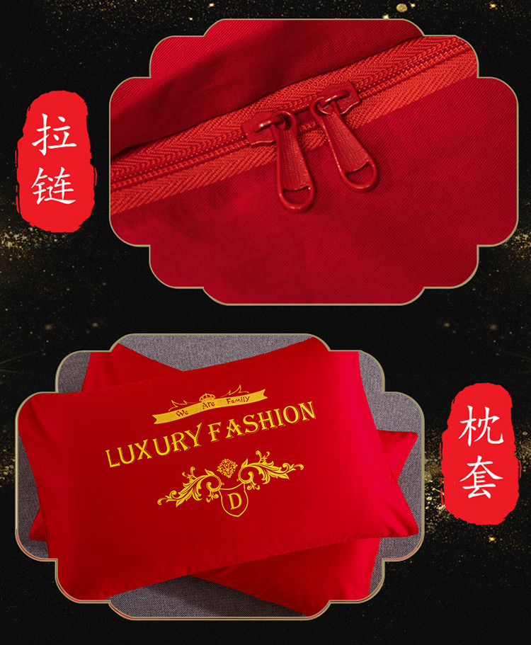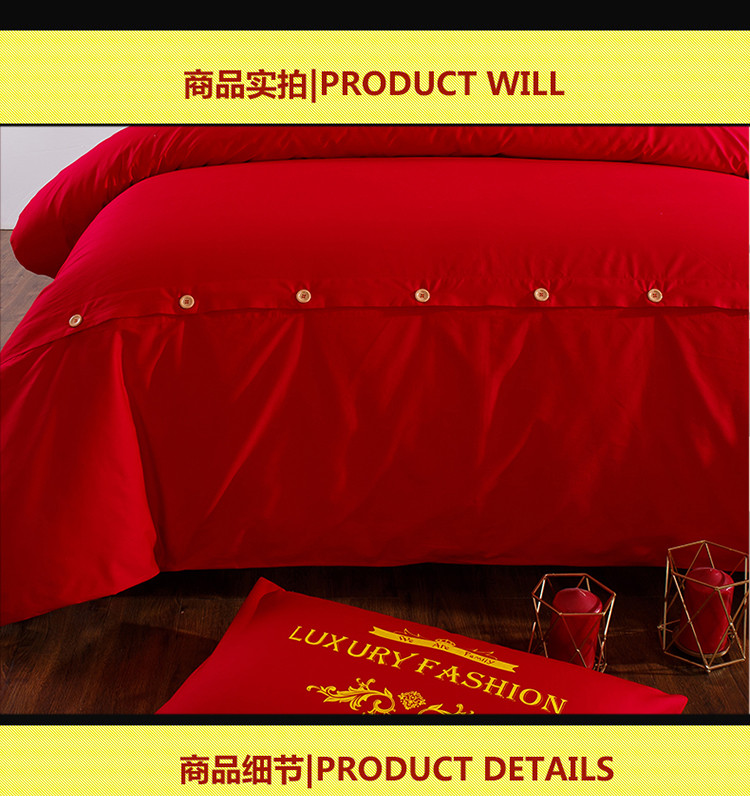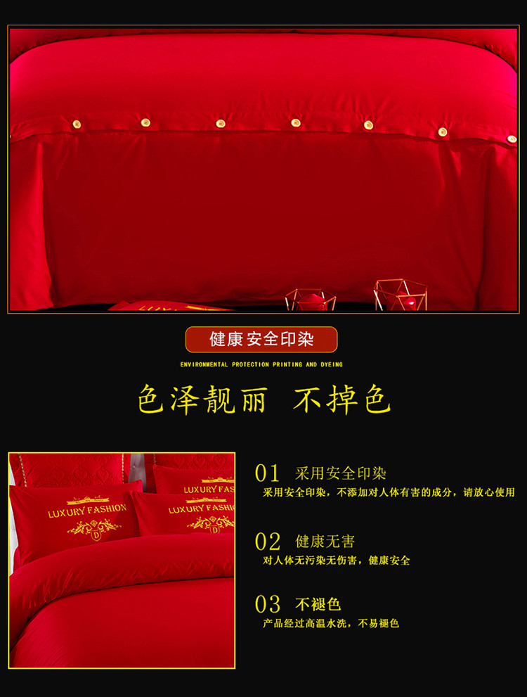 商品名称:慕她家纺 简约婚庆四件套大红色刺绣全棉纯棉六多件套约会春天