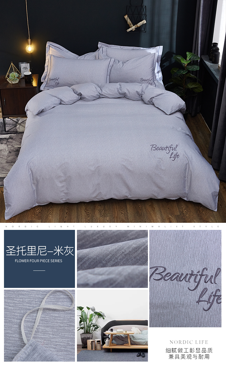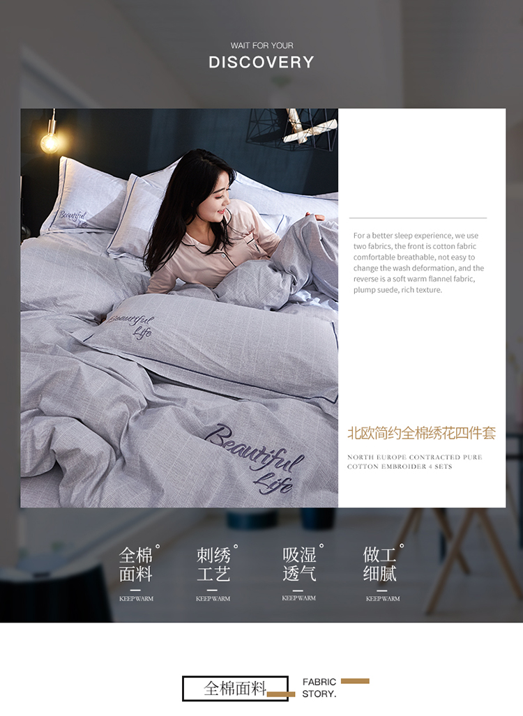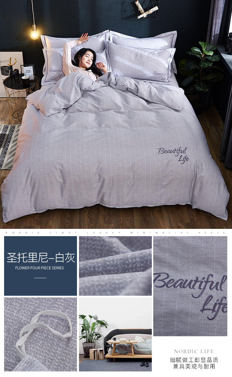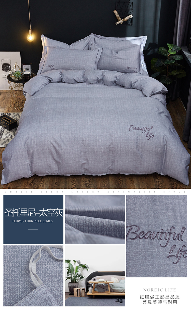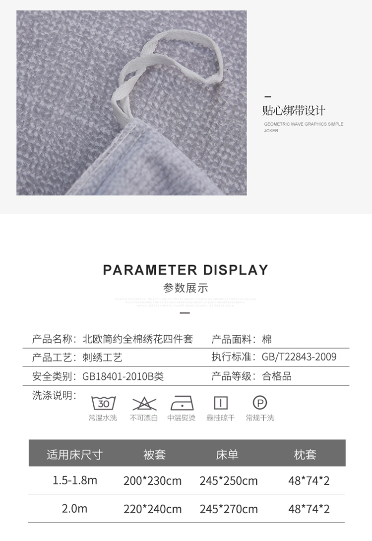 商品名称:(总)雲归梦 北欧简约全棉绣花四件套