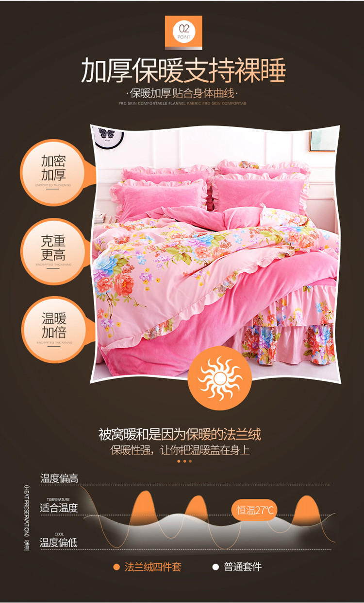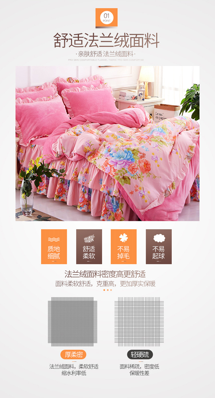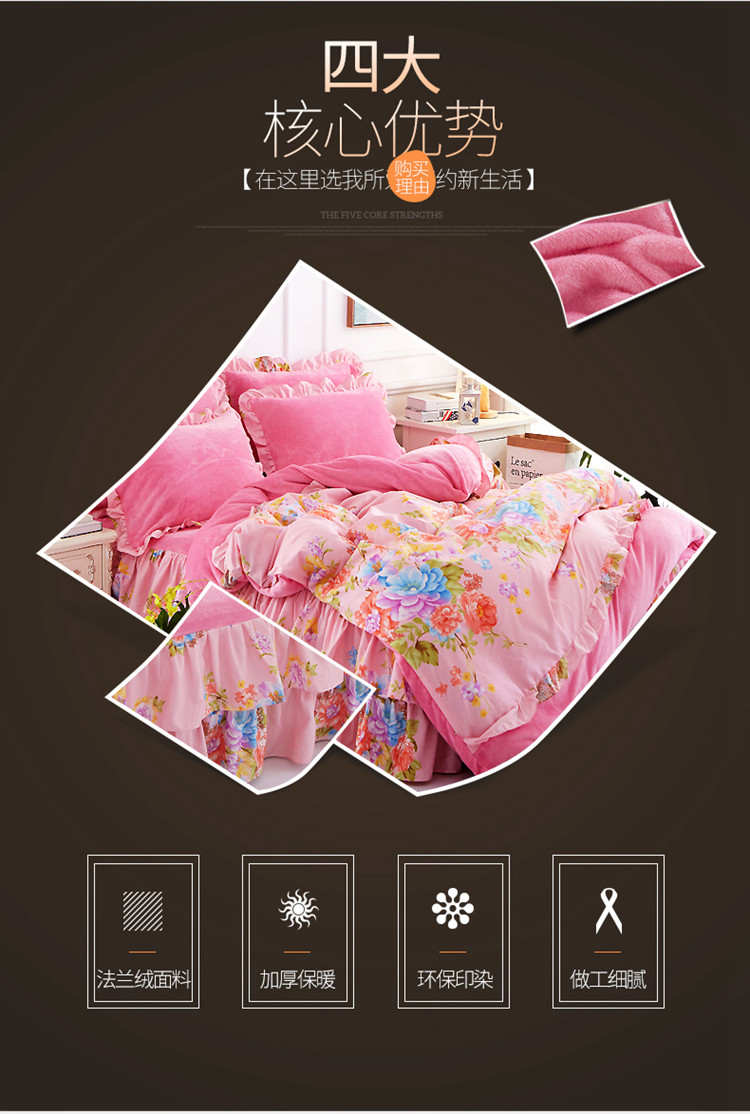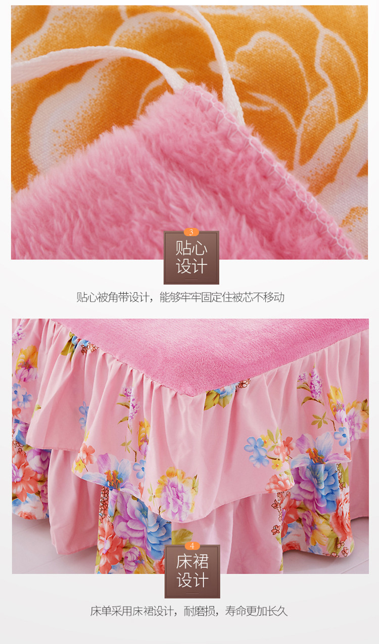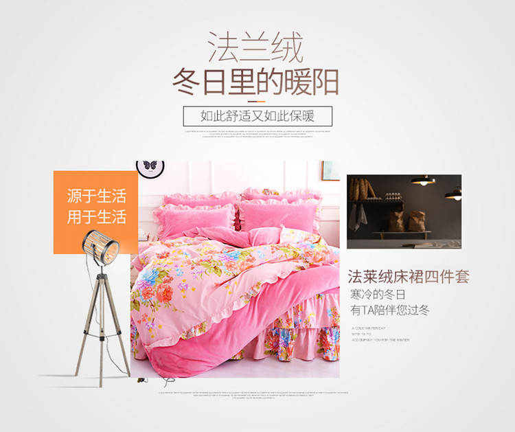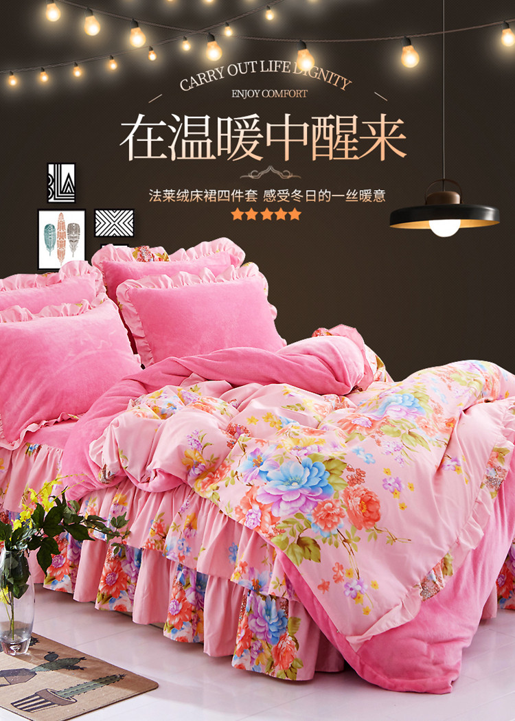 商品名称:铠畅 2019韩版法莱绒床裙四件套 镜花水月