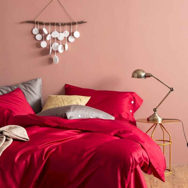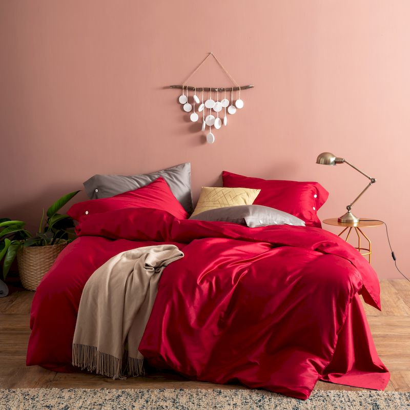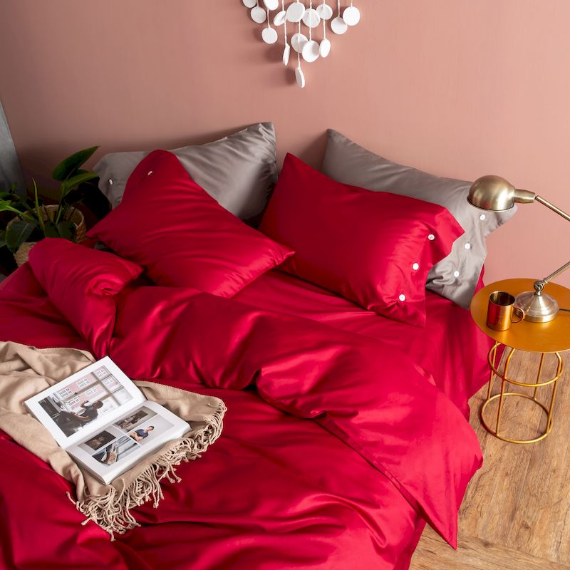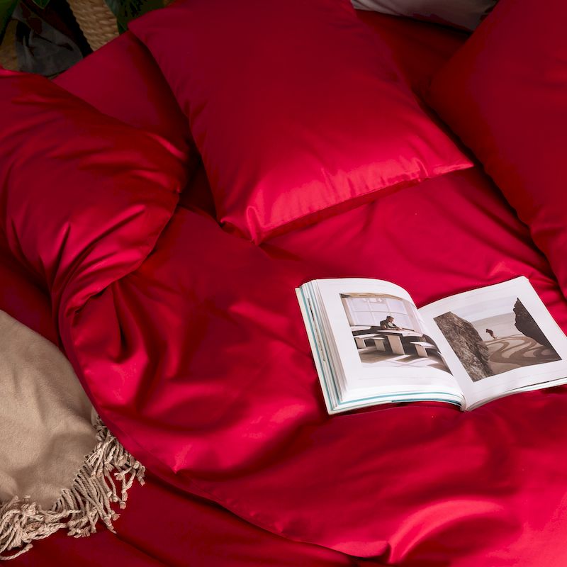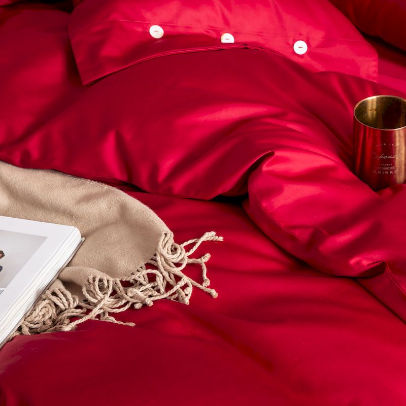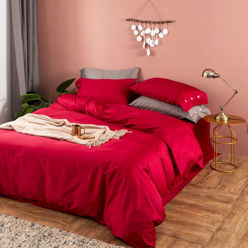 商品名称:涞澳家纺 2019新款60长绒棉平色简易四件套 玛雅红