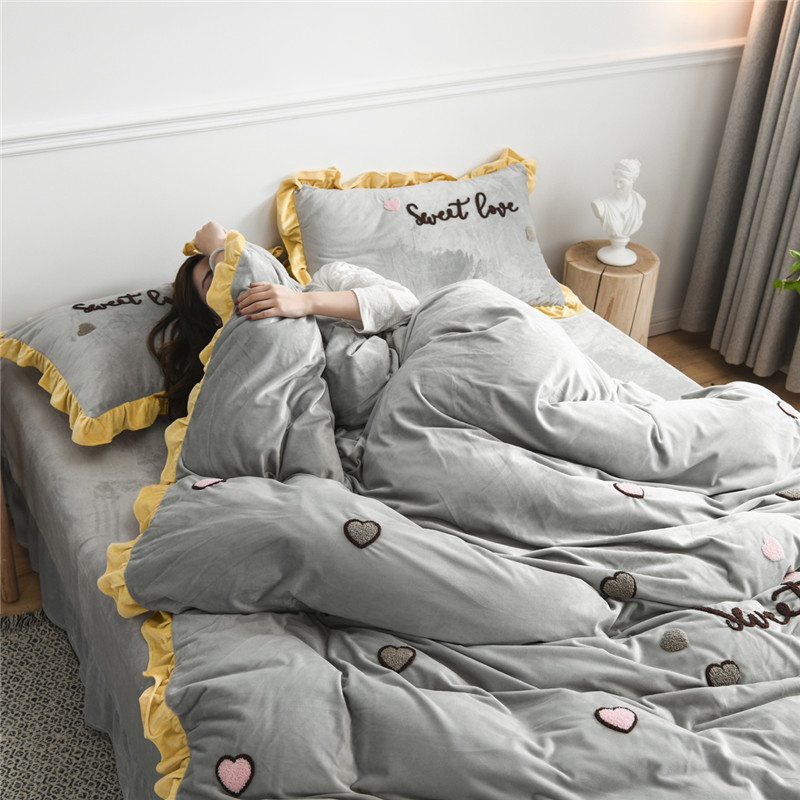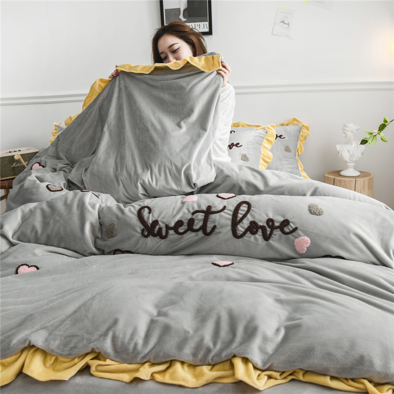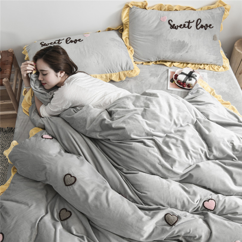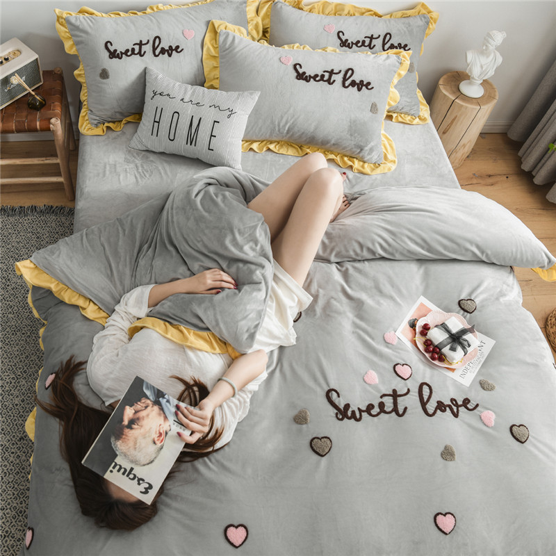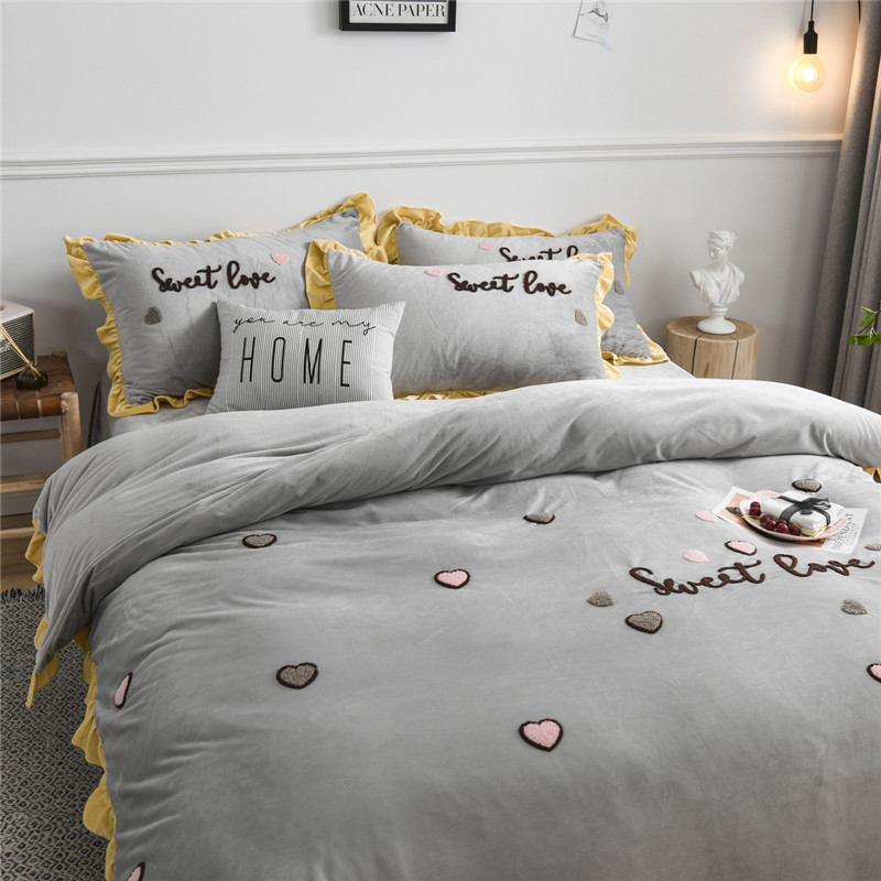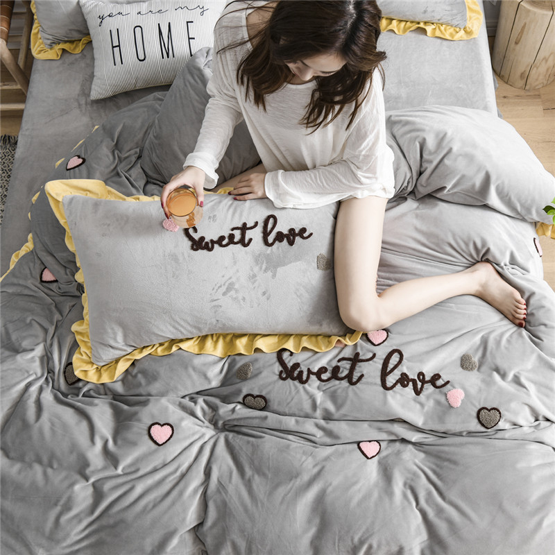 商品名称:昔可 2019新款宝宝绒毛巾绣四件套模特图 甜心coco灰色