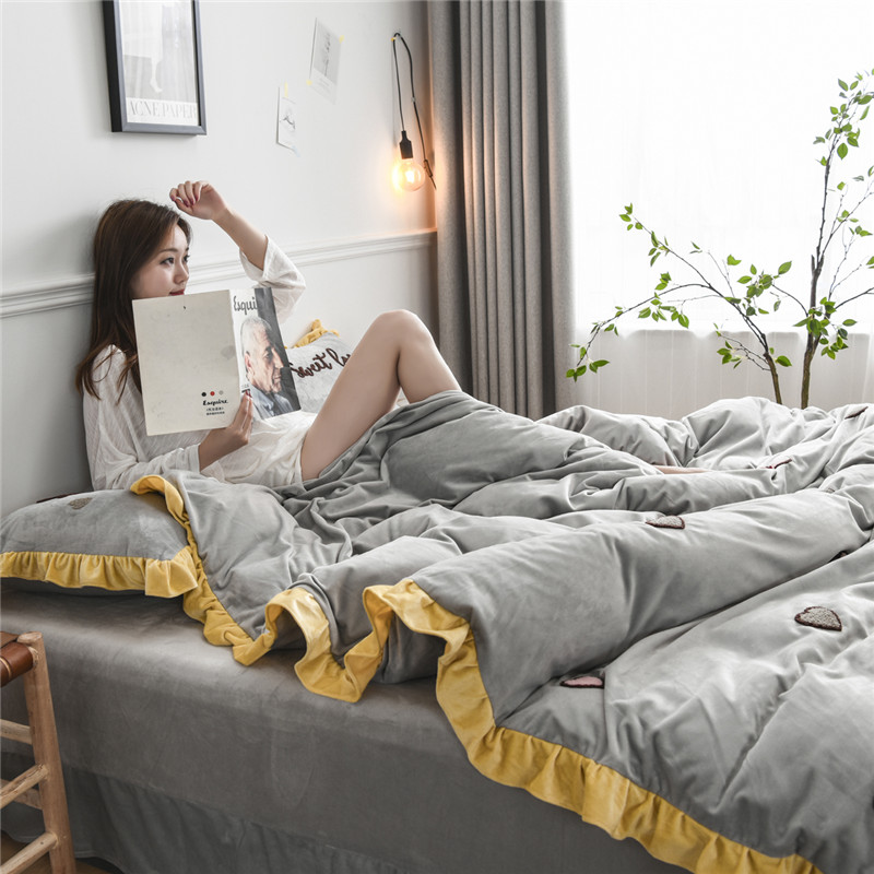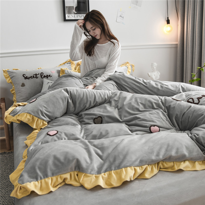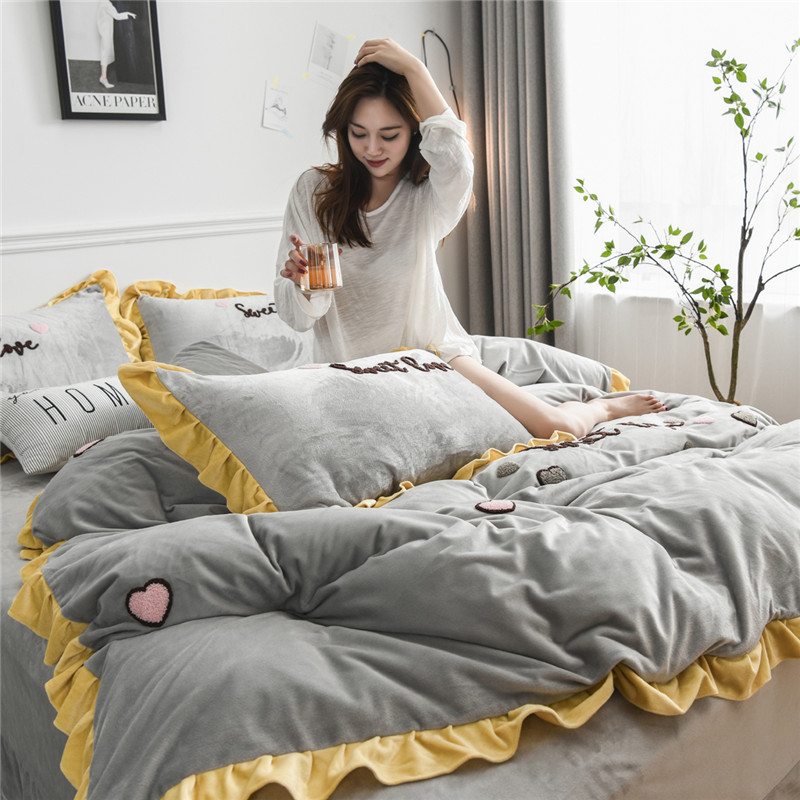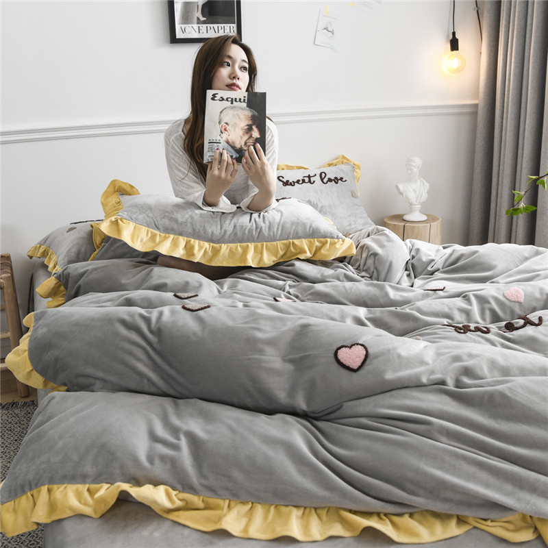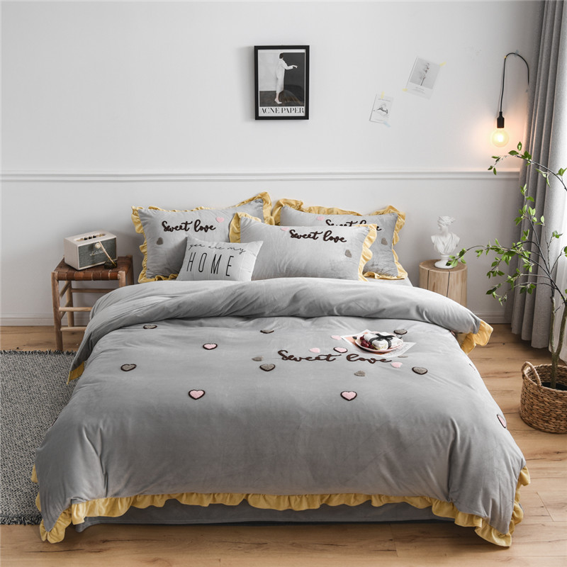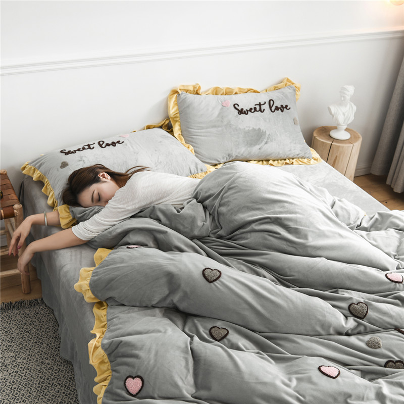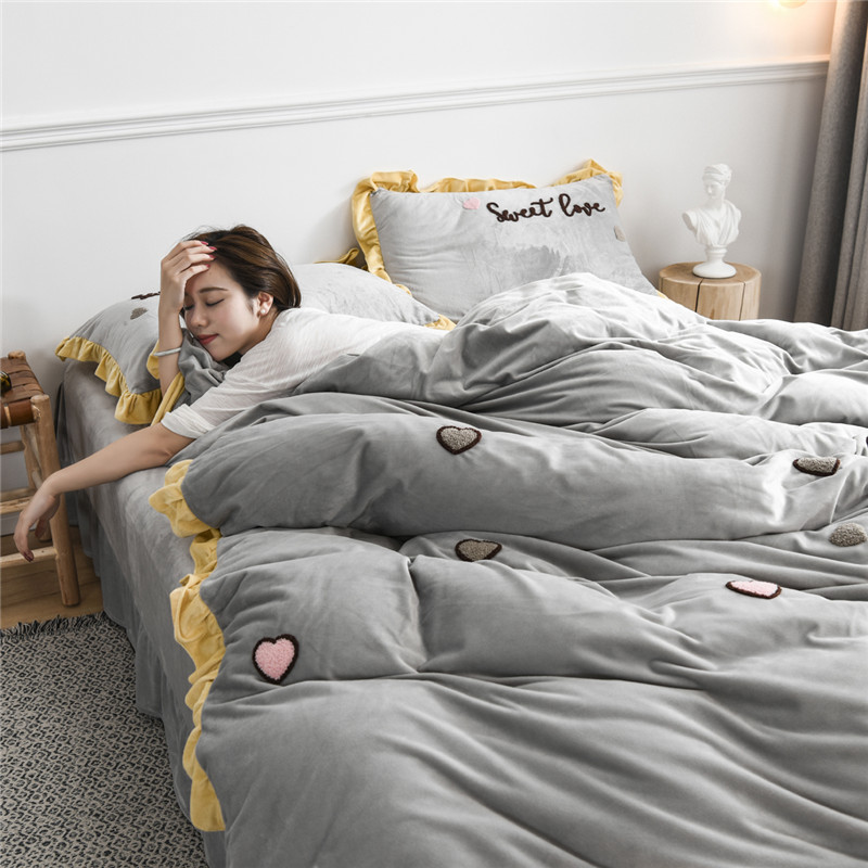 商品名称:昔可 2019新款宝宝绒毛巾绣四件套模特图 甜心coco灰色