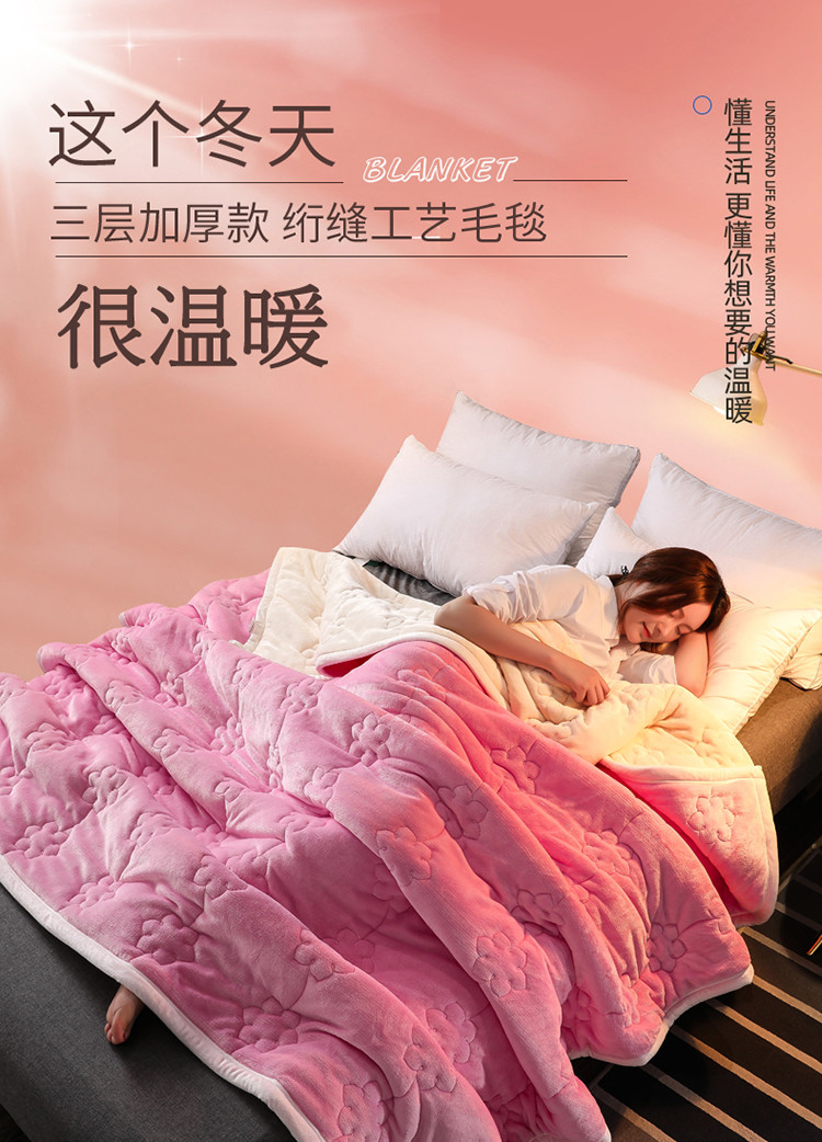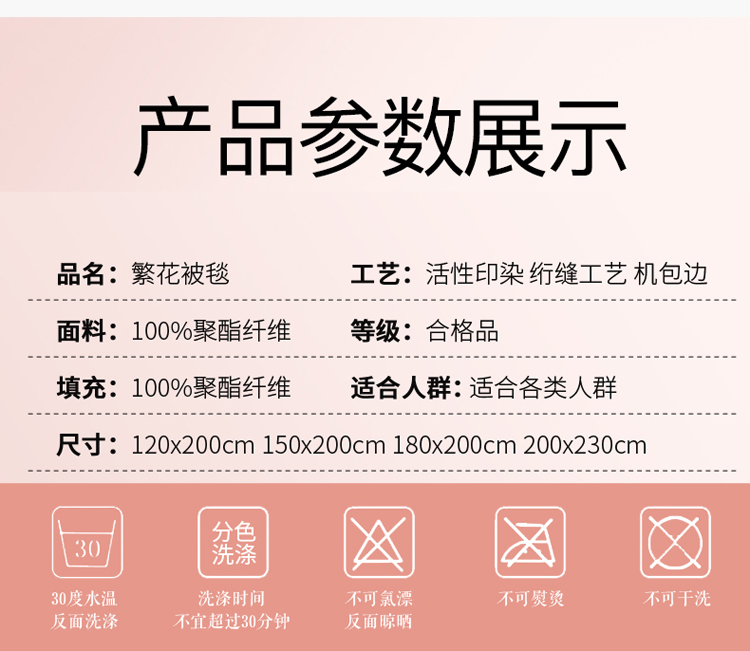 商品名称:小牛席业 2020新款繁花被毯 粉色