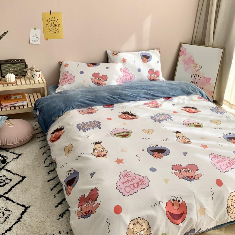 (总)时年 2021新款40S全棉印花四件套小可爱系列,贝尔先生,彩虹云朵,花西子,欢乐字母,金刚,奇思妙想,气球皮皮,树林生活