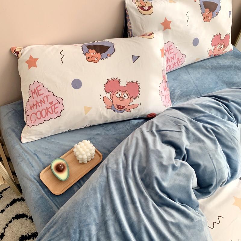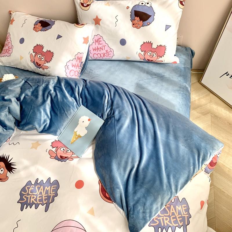 时年 2019棉加绒系列三四件套 芝麻宝贝蓝