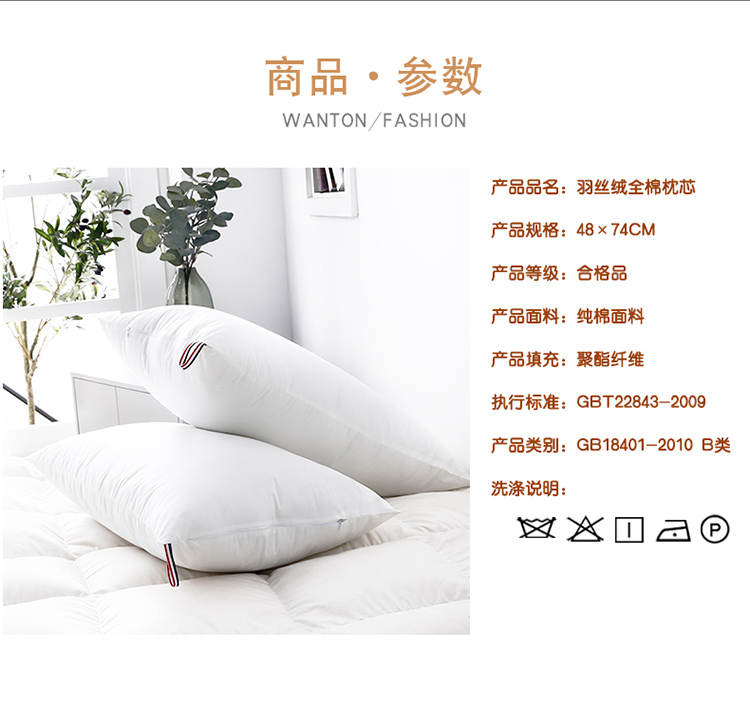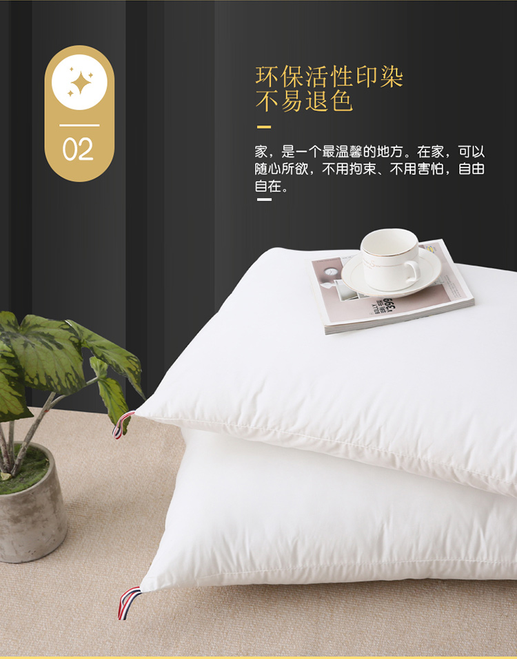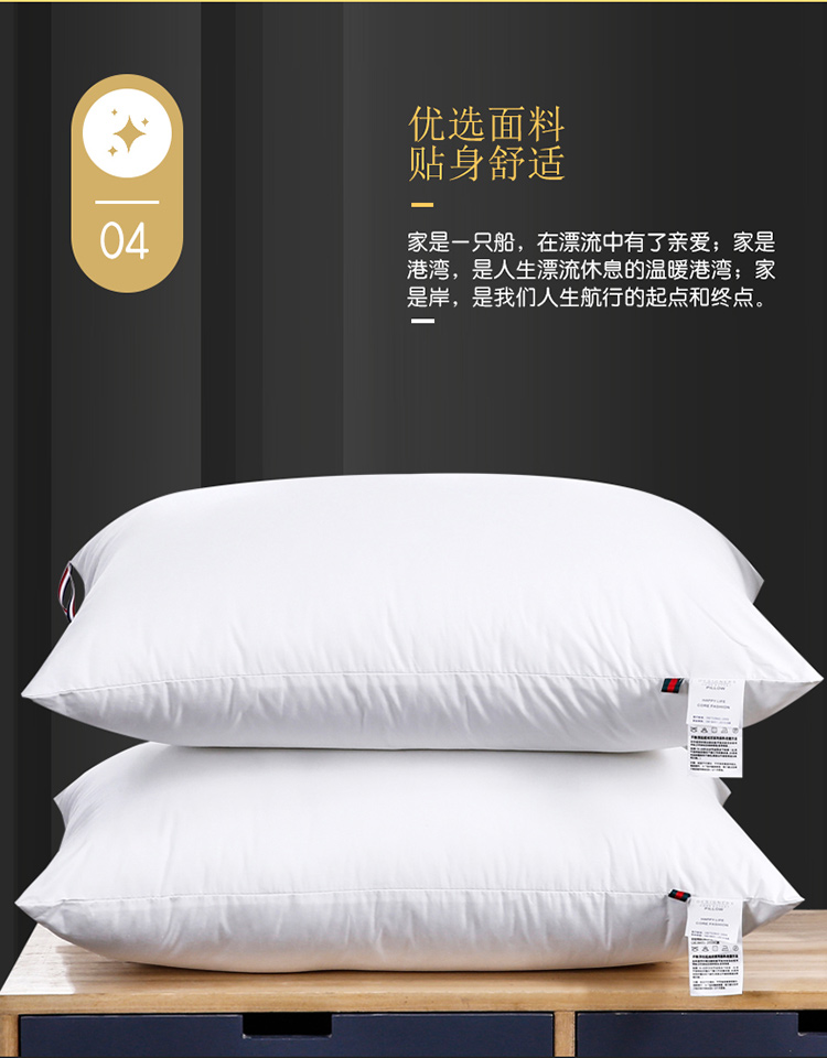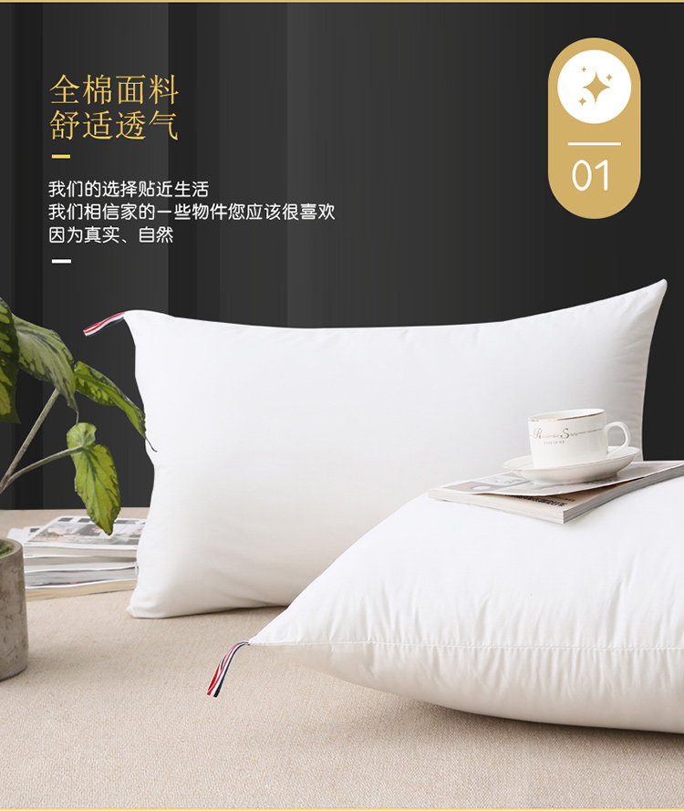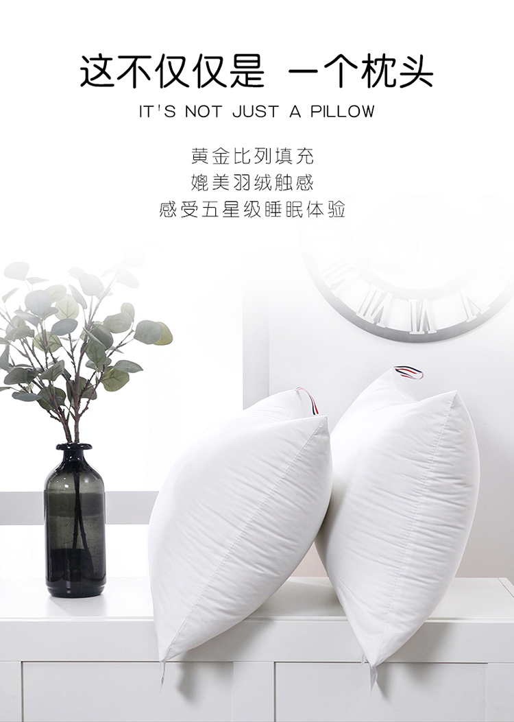 当前位置: 91家纺网 > 商品网购 > 枕头/枕芯/保健枕/颈椎枕 > 普通枕芯 > 仁宇枕业 新款枕头全棉酒店羽丝绒枕高中低枕48*74一个