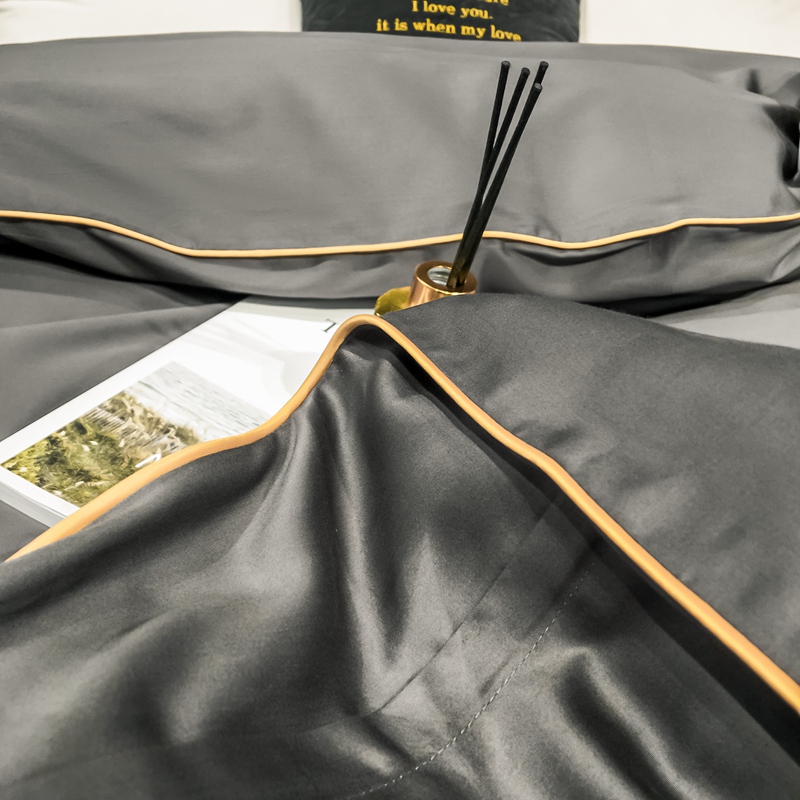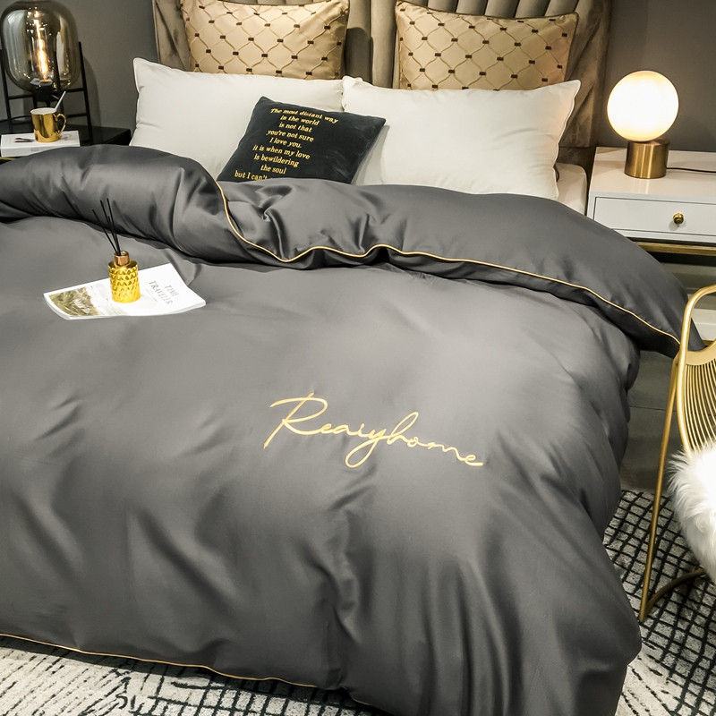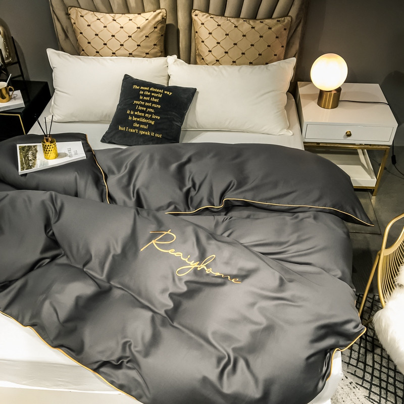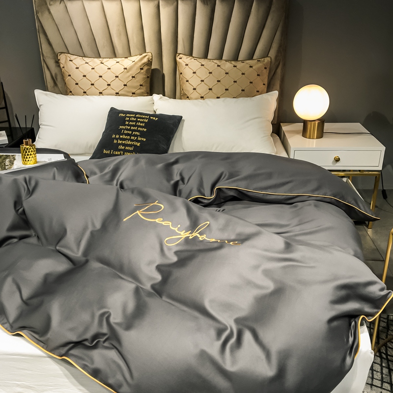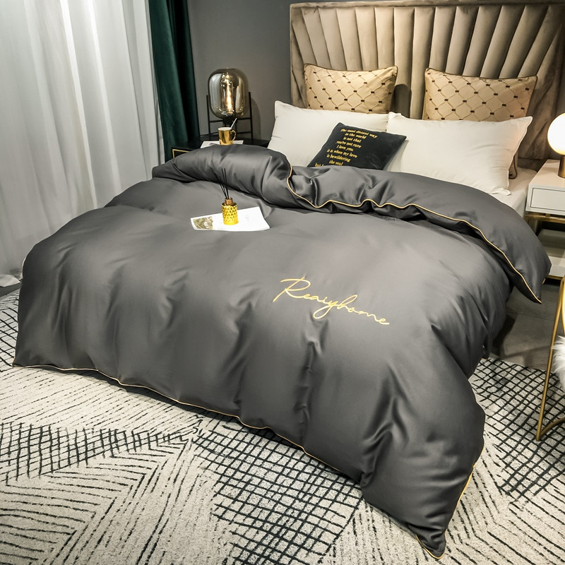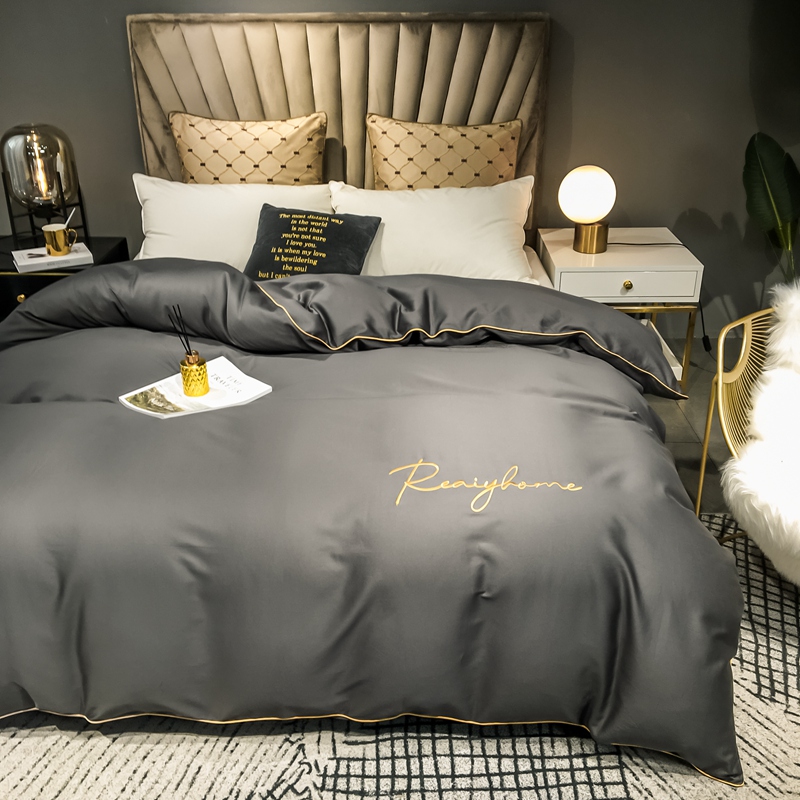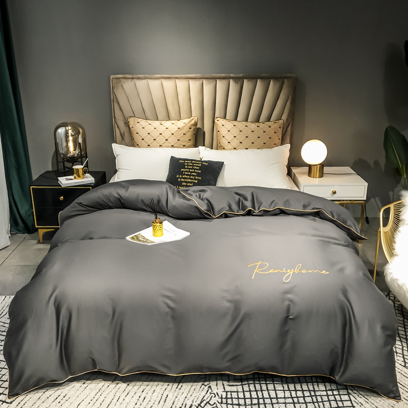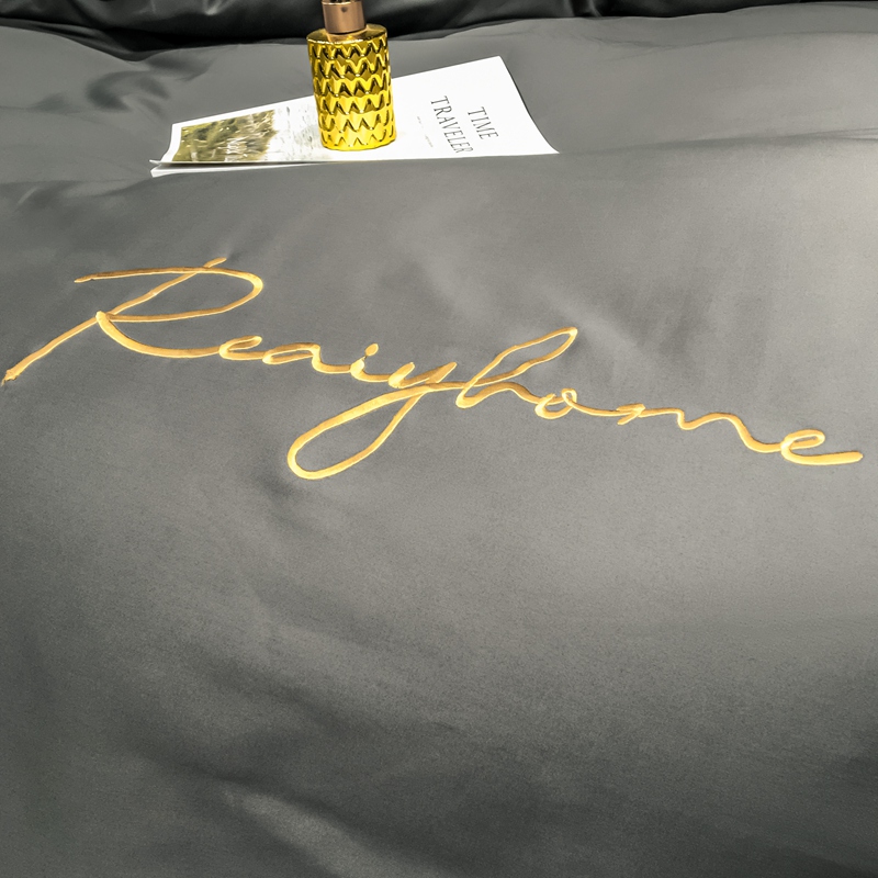 慕色家纺 2020新款40s全棉贡缎刺绣单被套 轻奢高级灰