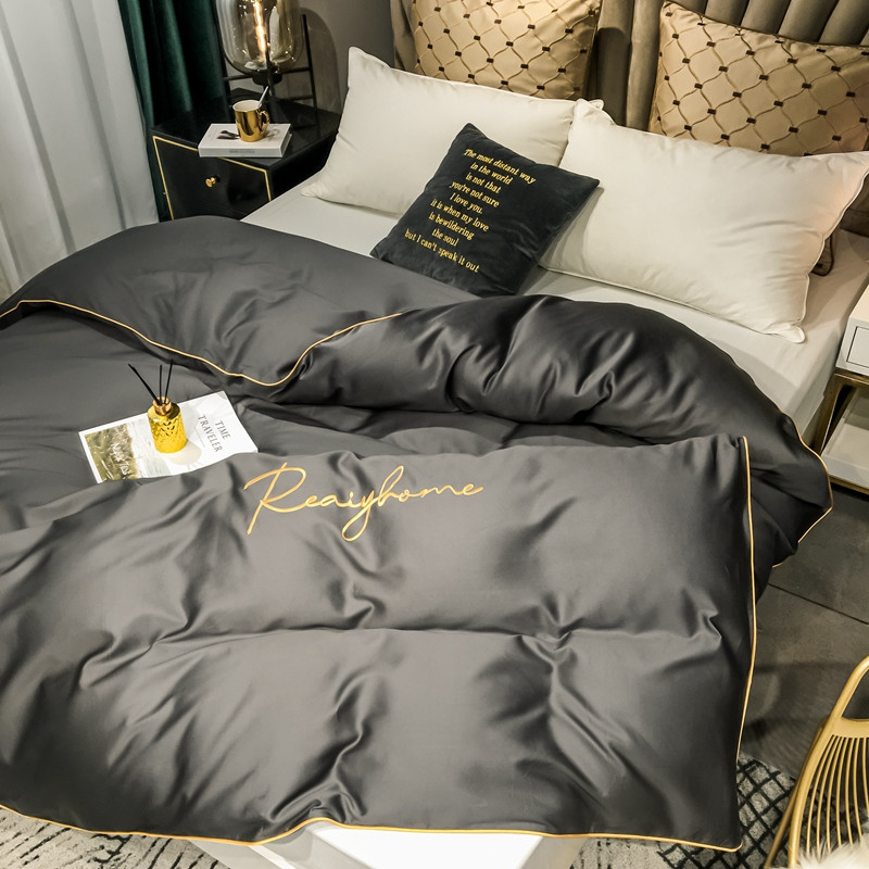 商品名称:慕色家纺 2020新款40s全棉贡缎刺绣单被套 轻奢高级灰
