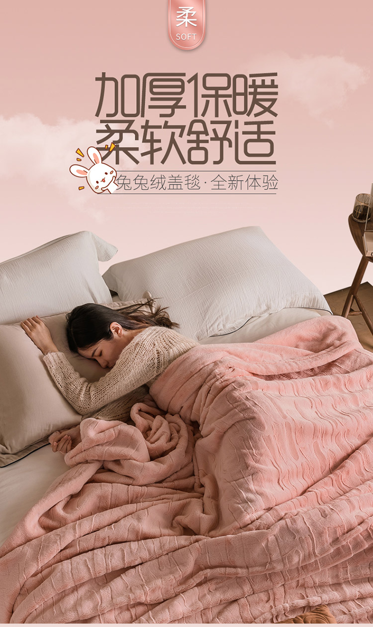 商品名称:坦客毯业 2025新款兔兔绒毛毯 珍珠粉