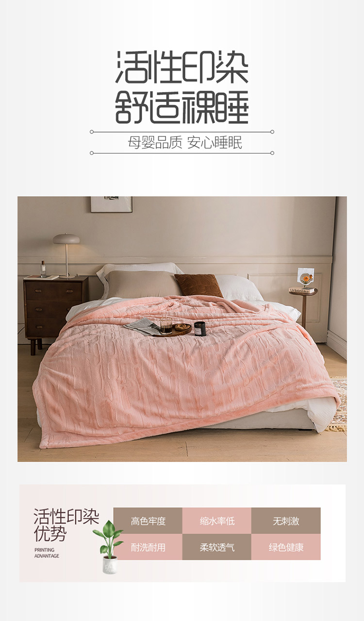 坦客毯业 2025年新款印花法莱绒毛毯沙发盖毯午睡毯子 简卉,简卉