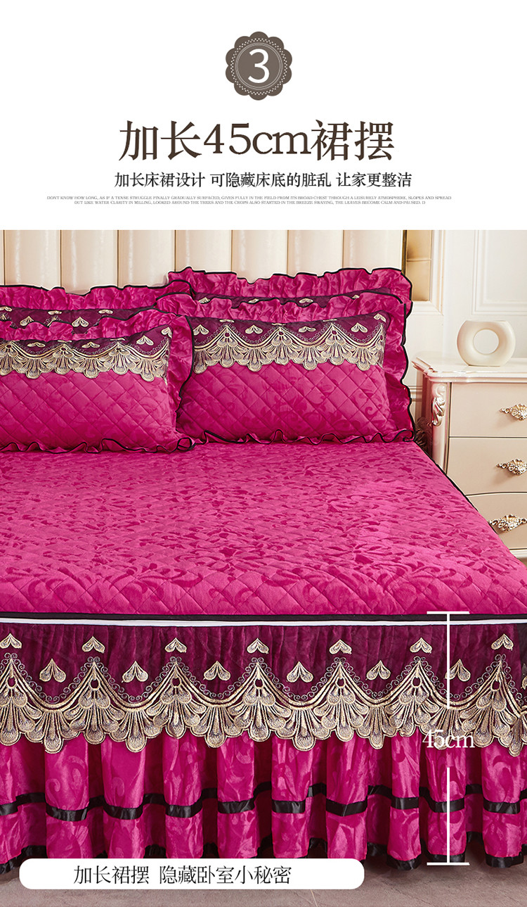 商品名称:网红馆 2025新款天鹅绒盛世佳人单品蕾丝床裙 玫红
