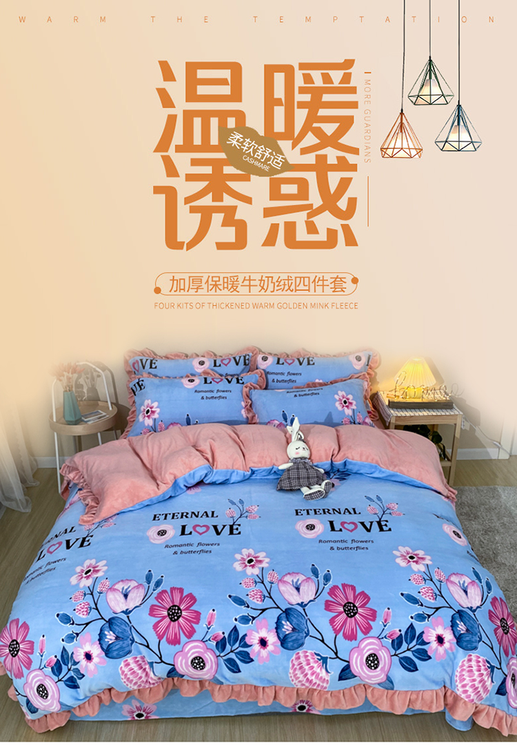 妖妖家纺 2020新款花边牛奶绒四件套 旅途