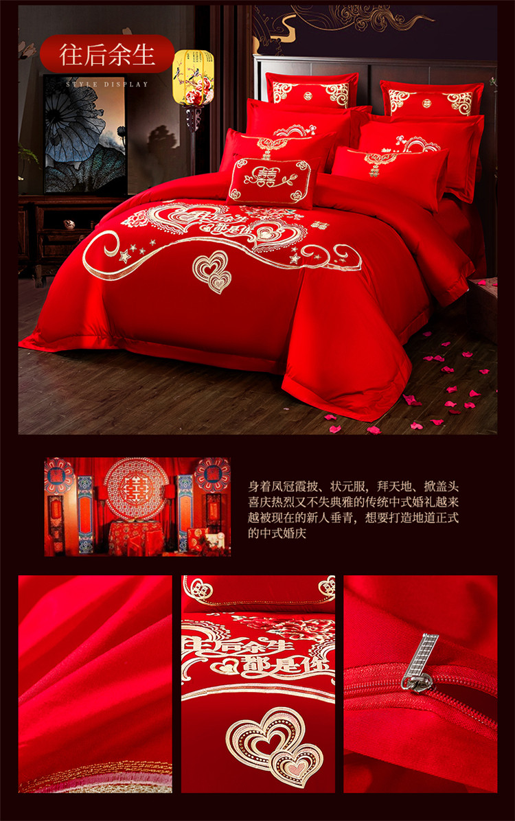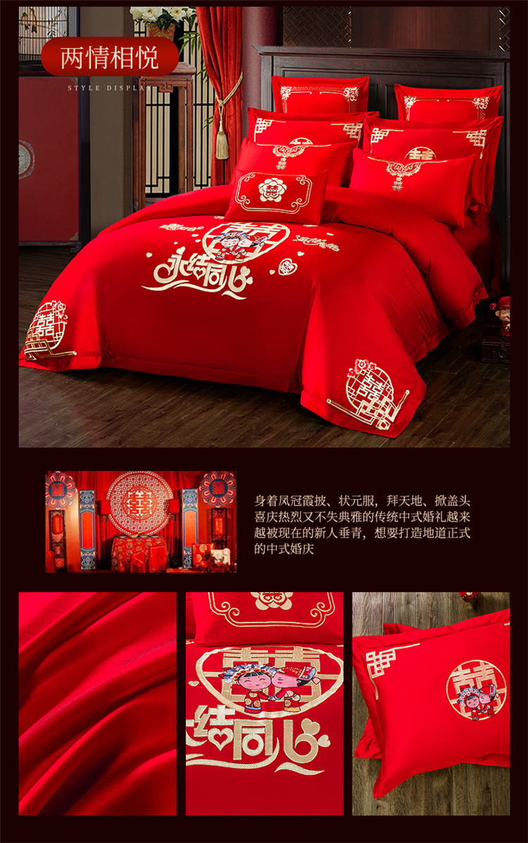 (总)千禧家纺 2024新款双面长绒棉磨毛加厚保暖绣花婚庆套件,大喜大吉,鸿运贺禧,欢乐喜事,欢喜,美满爱情,喜上眉梢,喜约,相伴一生,挚爱