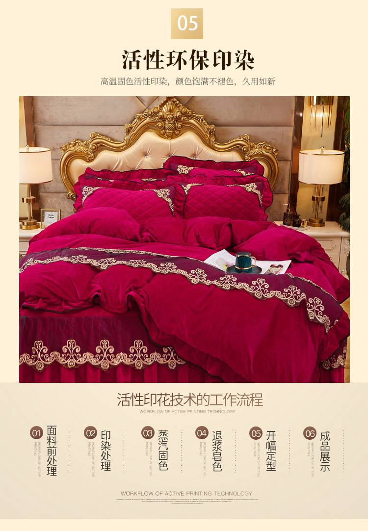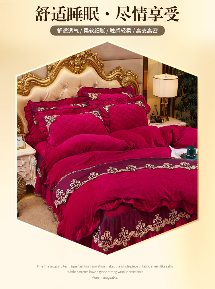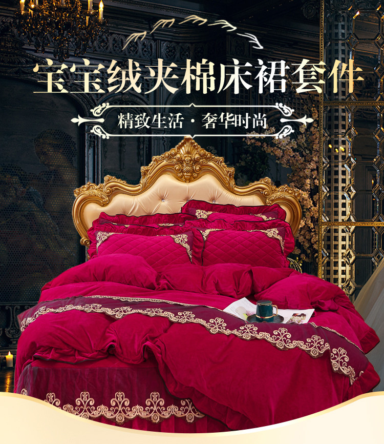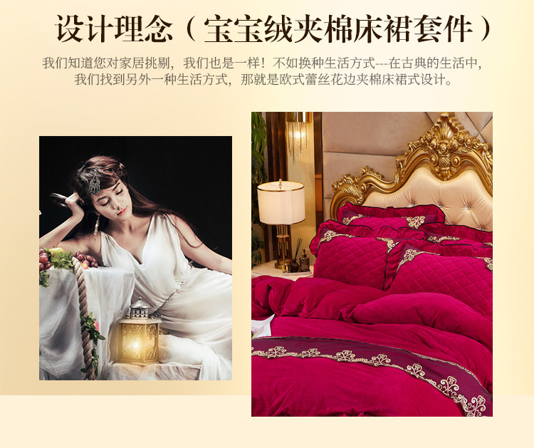 商品名称:星尚2020宝宝绒夹棉床裙款四件套水晶绒法莱绒婴儿绒 酒红