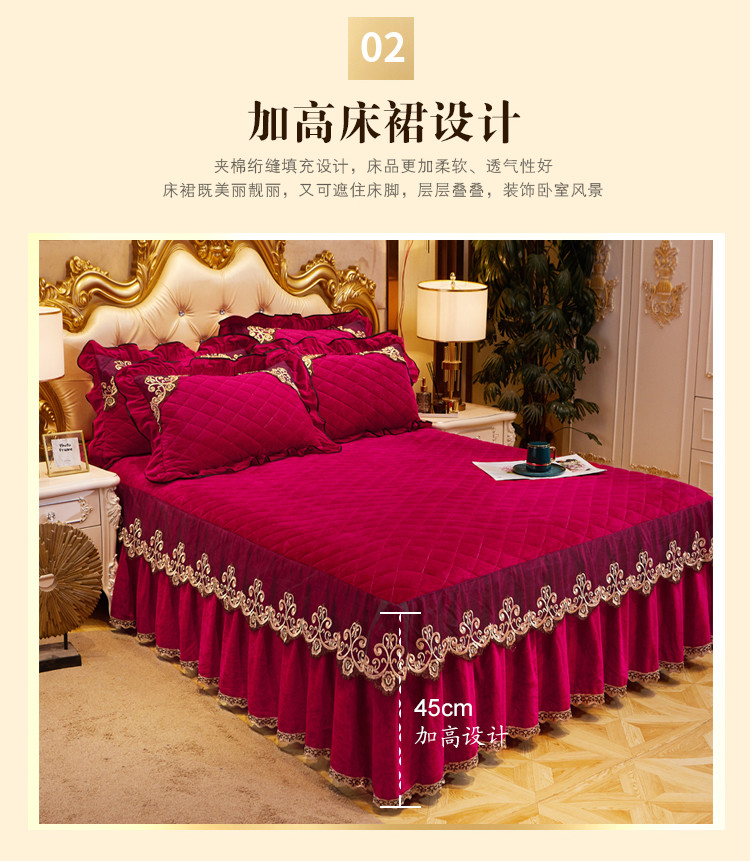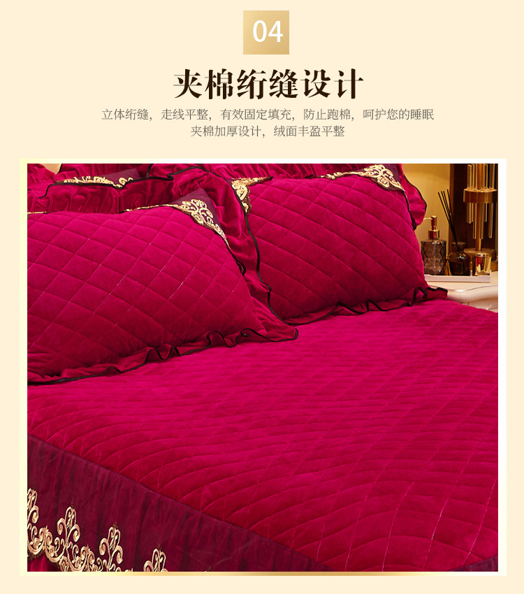 (总)星尚家纺 2024新款加厚保暖全消光牛奶绒夹棉床裙四件套-玫瑰之恋,粉玉,寐紫,浅蓝,水绿