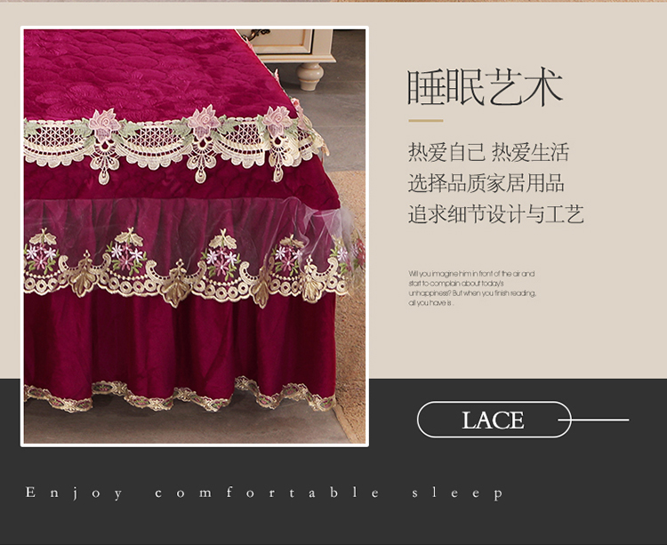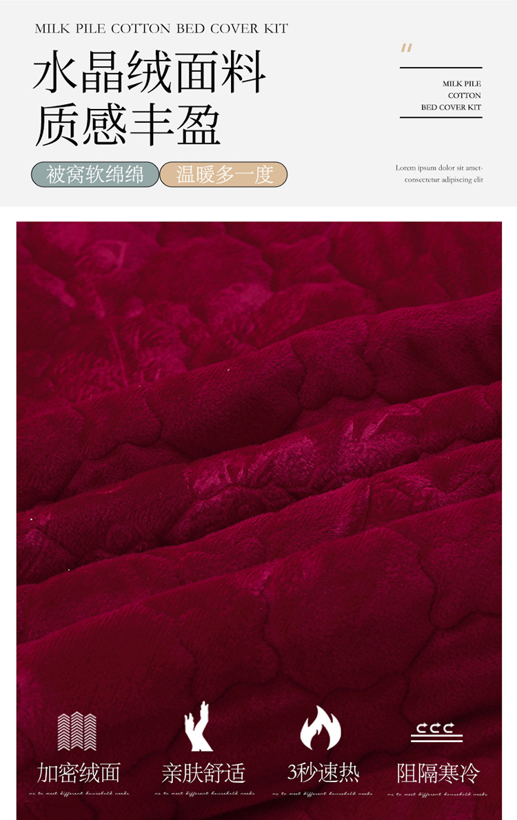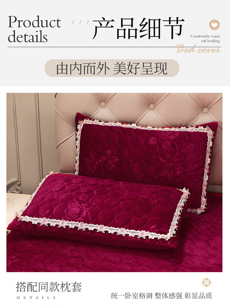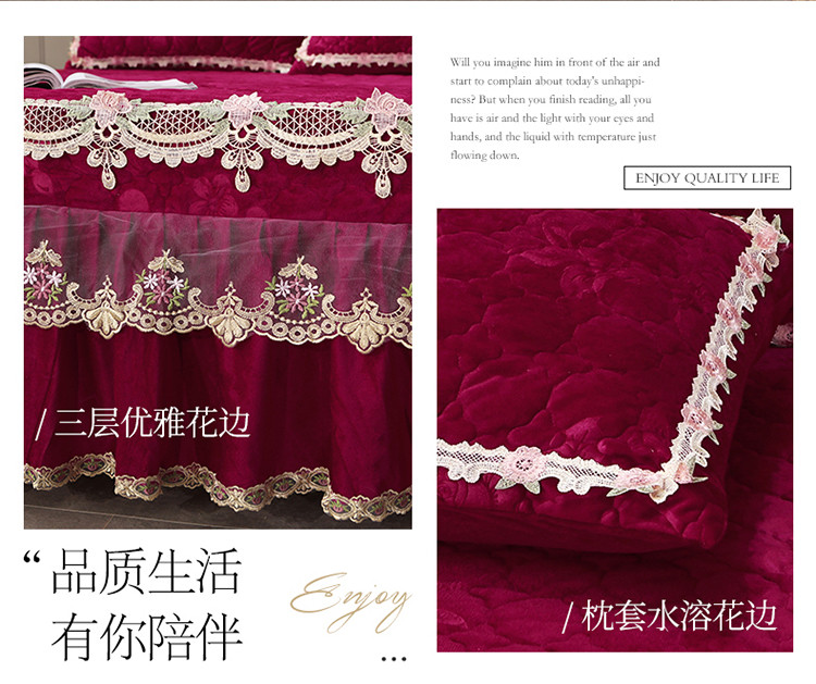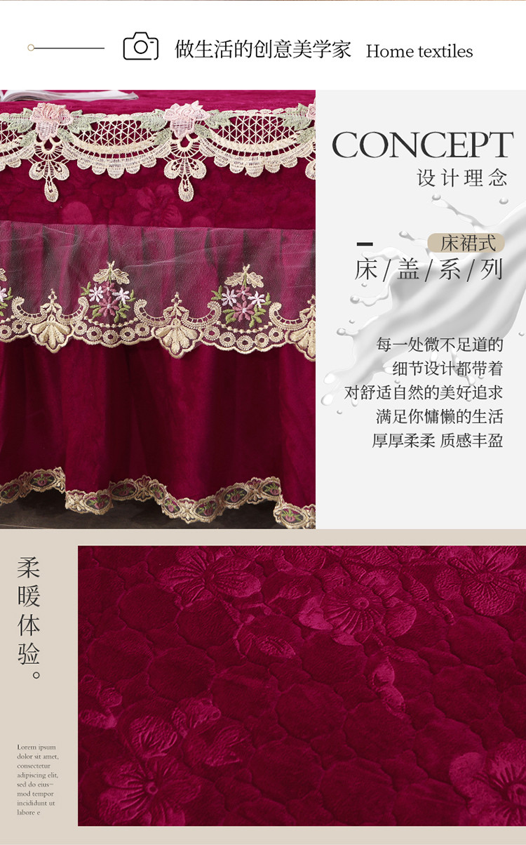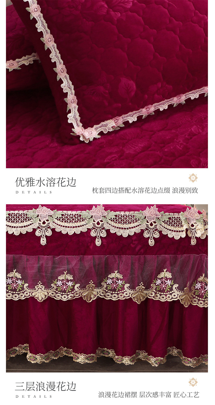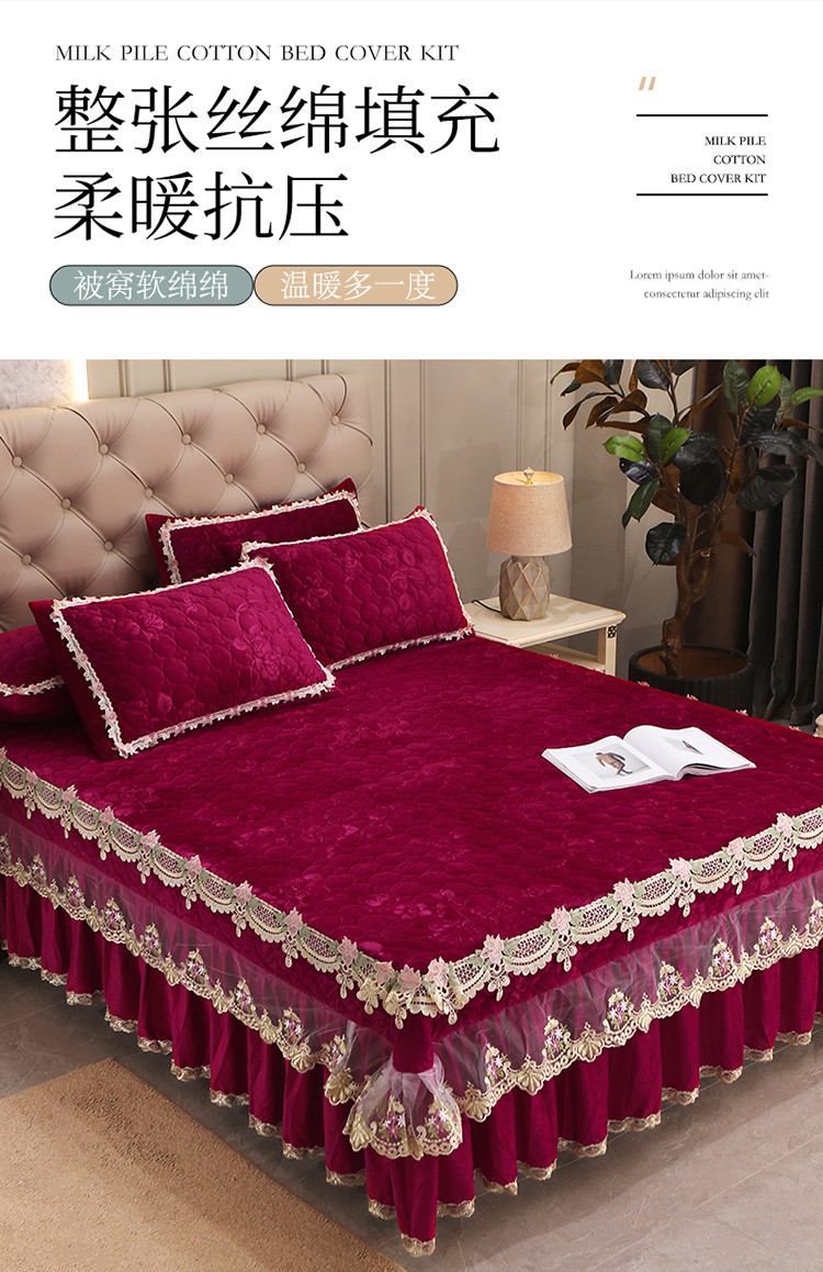 商品名称:宜凡家纺 2021新款水晶绒床裙式床盖三件套 冬日恋歌-酒红