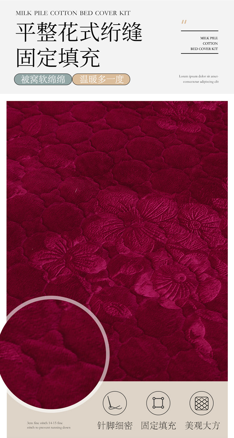 (总)宜凡家纺 2025新款婴儿绒压花全夹棉床盖四件套,韵雅-中国红,韵雅-黑天鹅