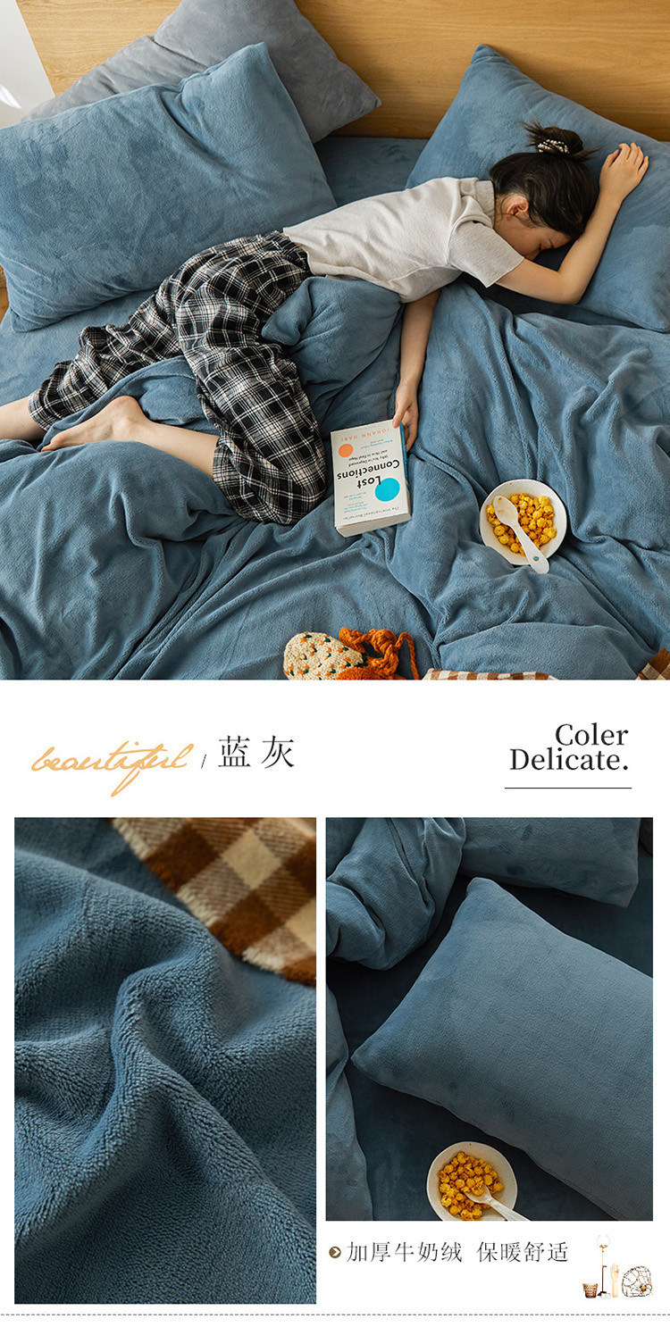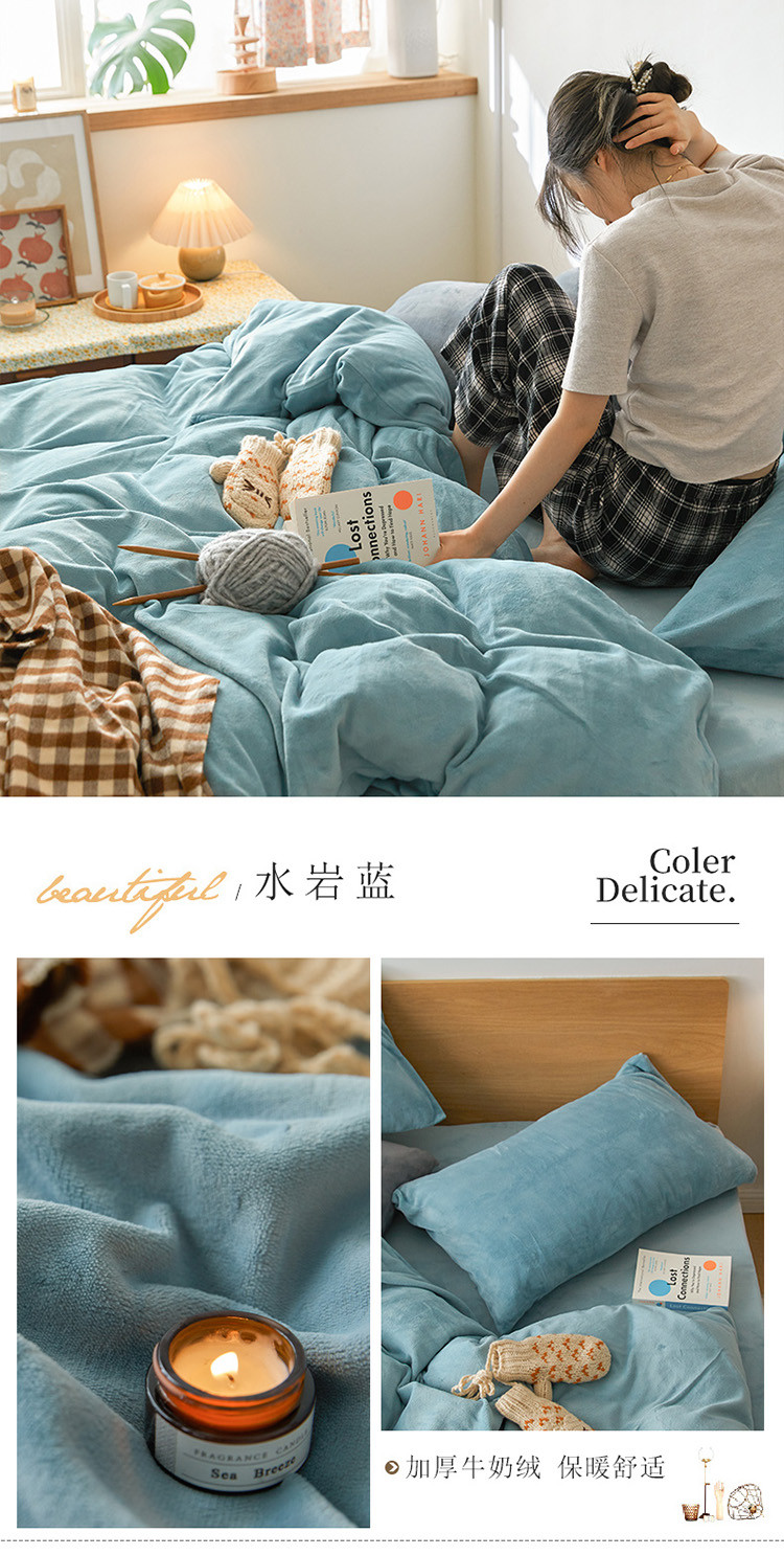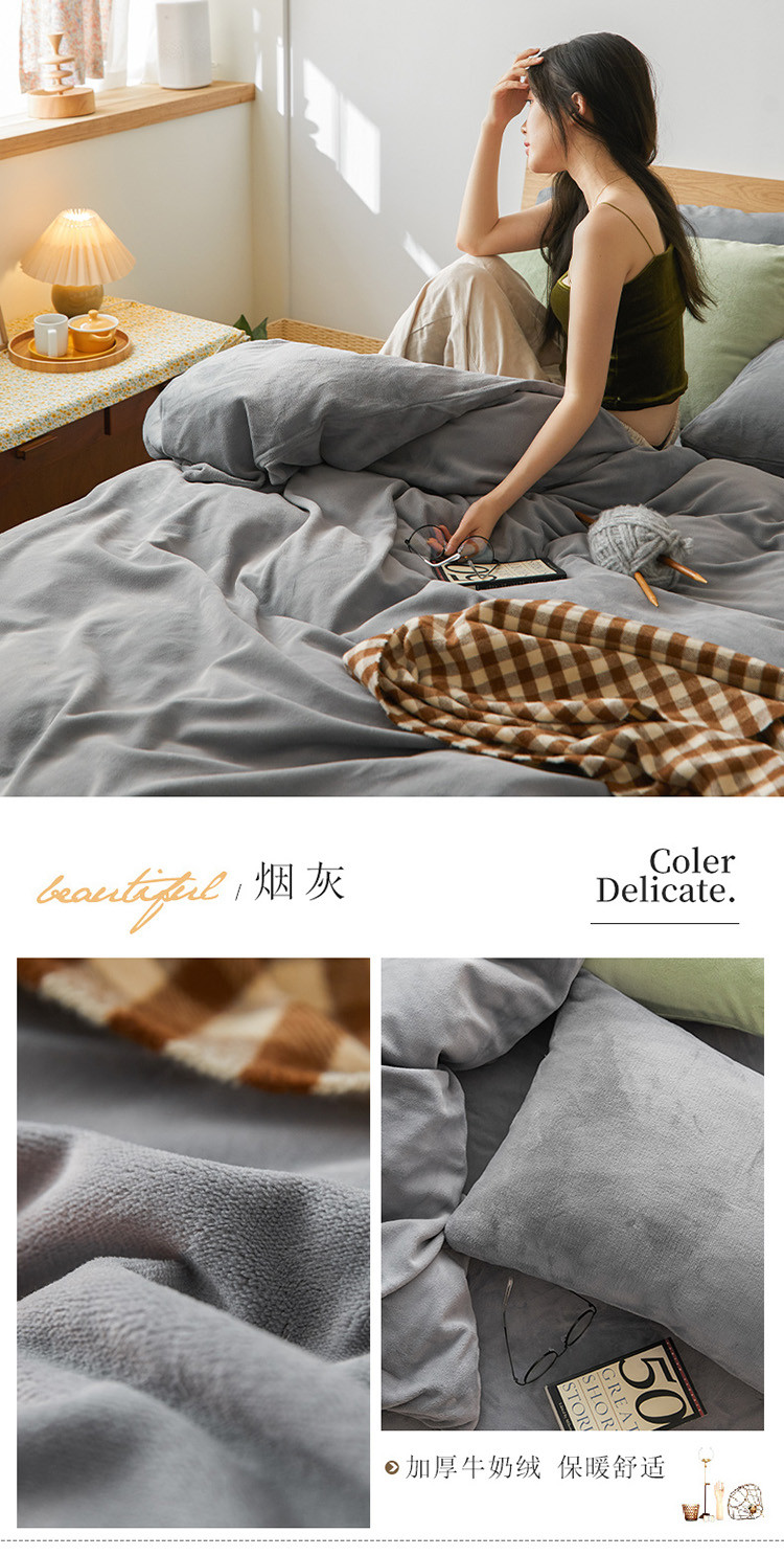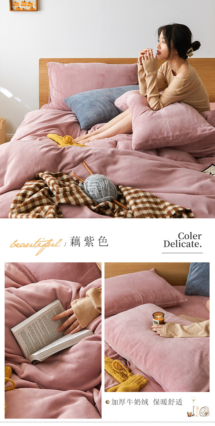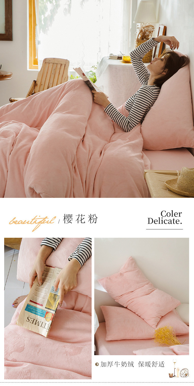 (总)时光里 2020新款纯色230克牛奶绒四件套
