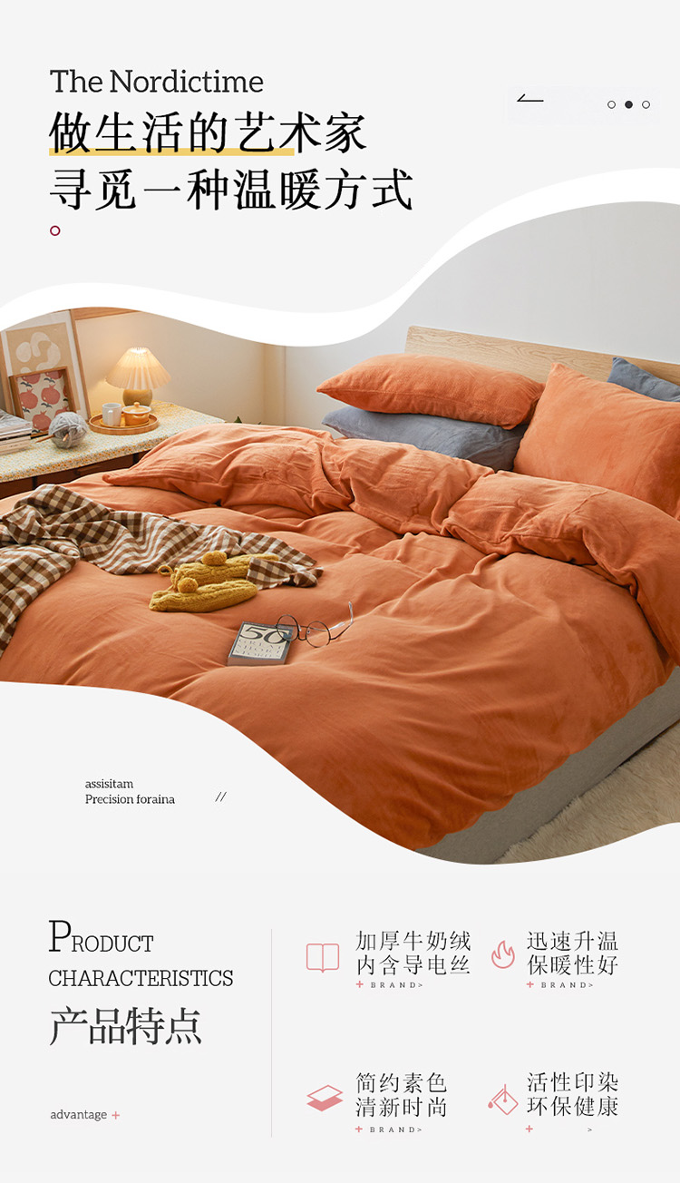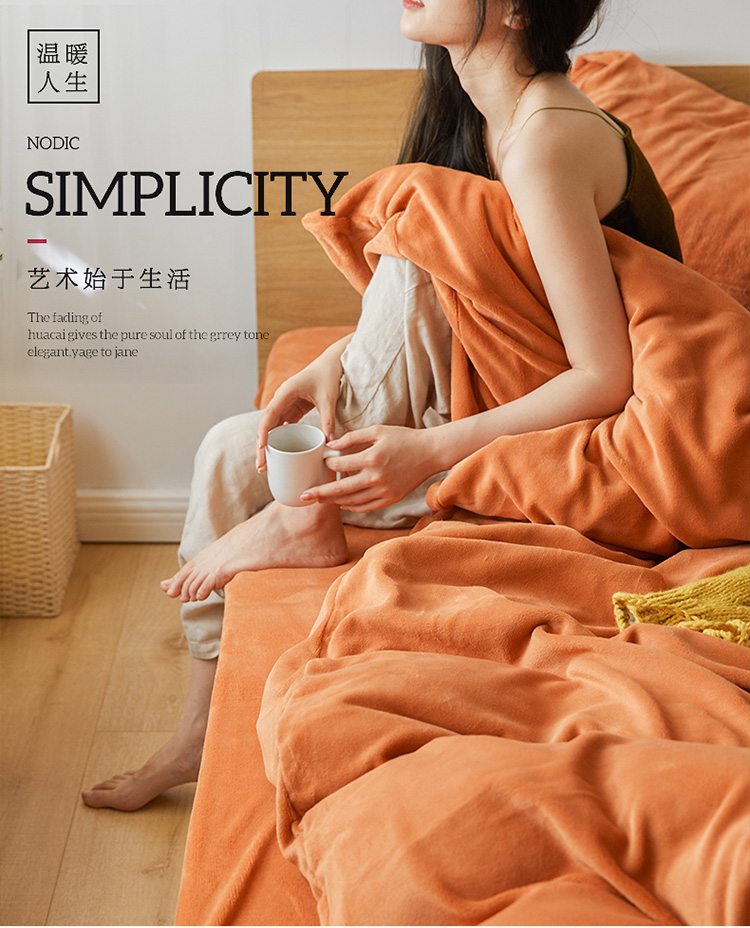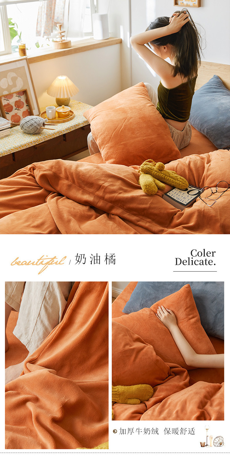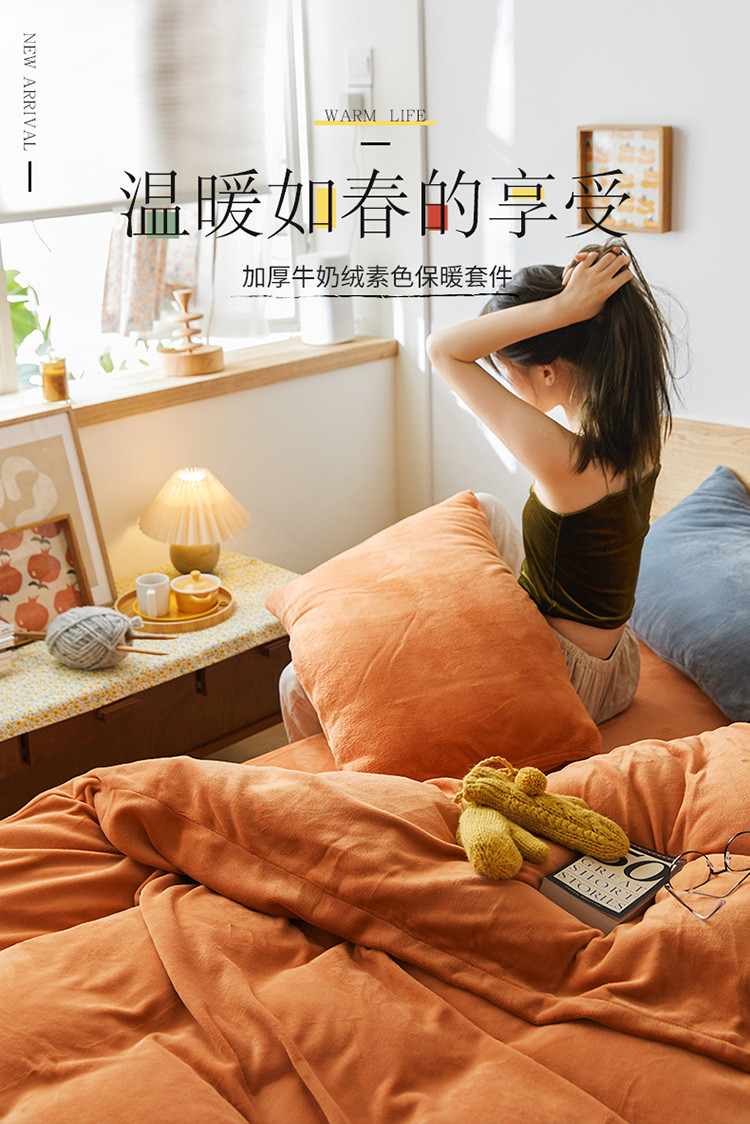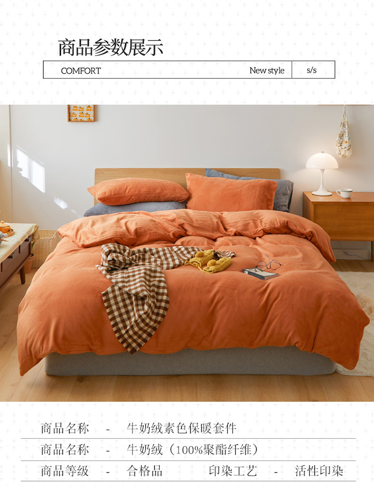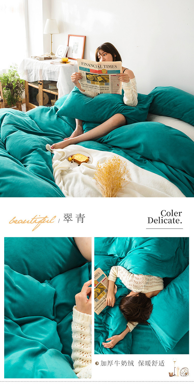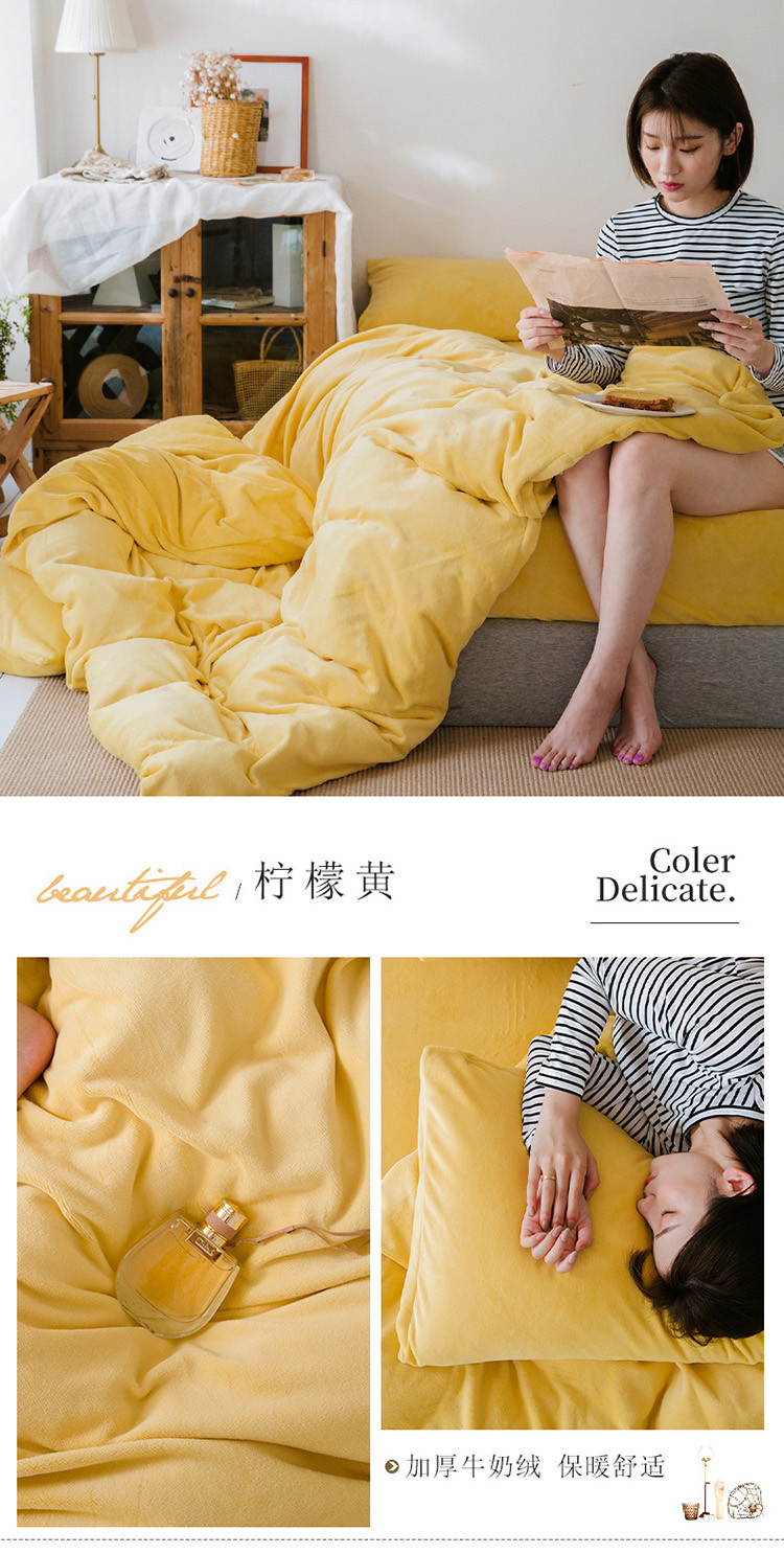 (总)时光里 2020新款纯色230克牛奶绒四件套