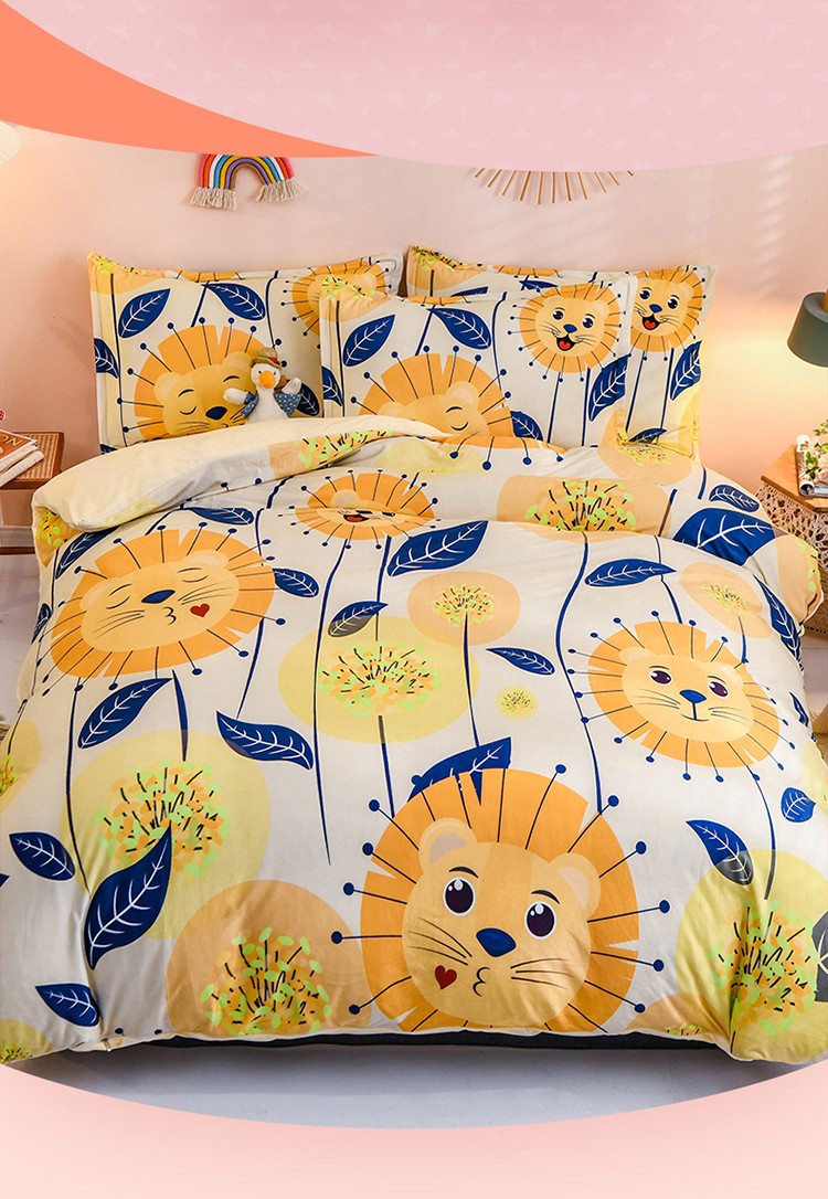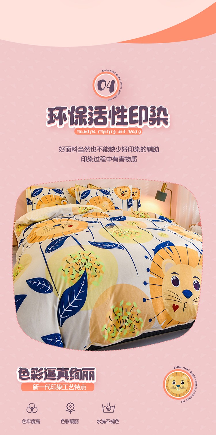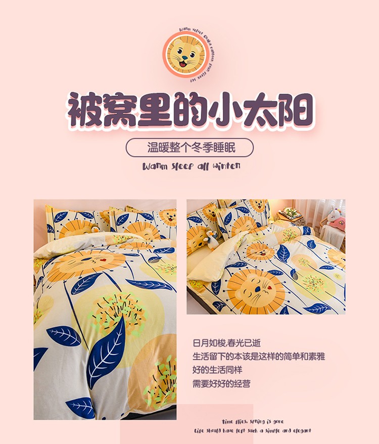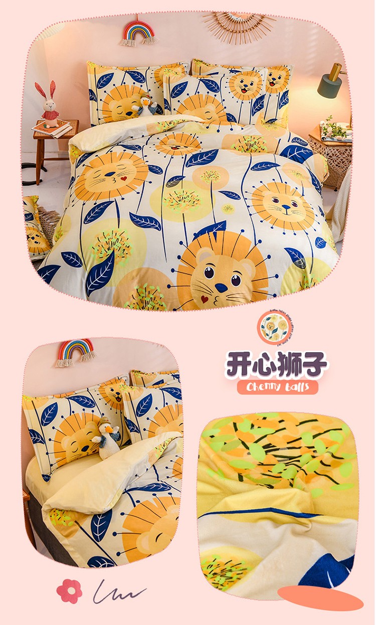 卡初 2020新款秋冬大版宝宝绒牛奶绒四件套开心狮子