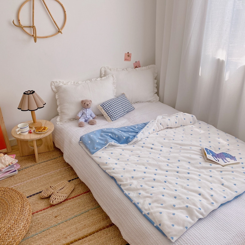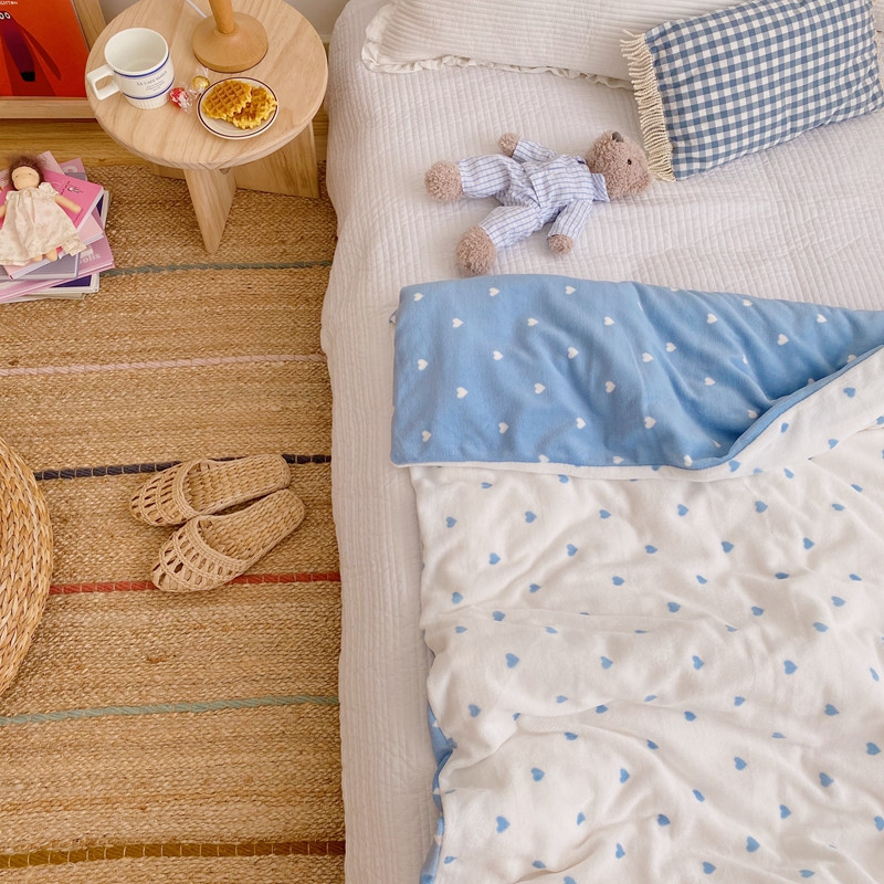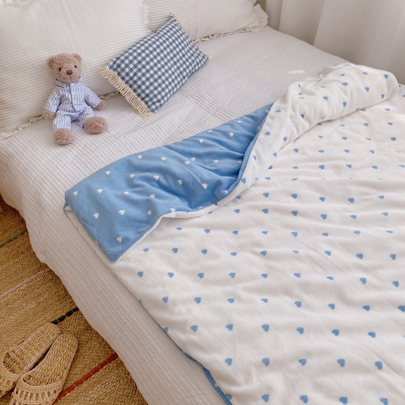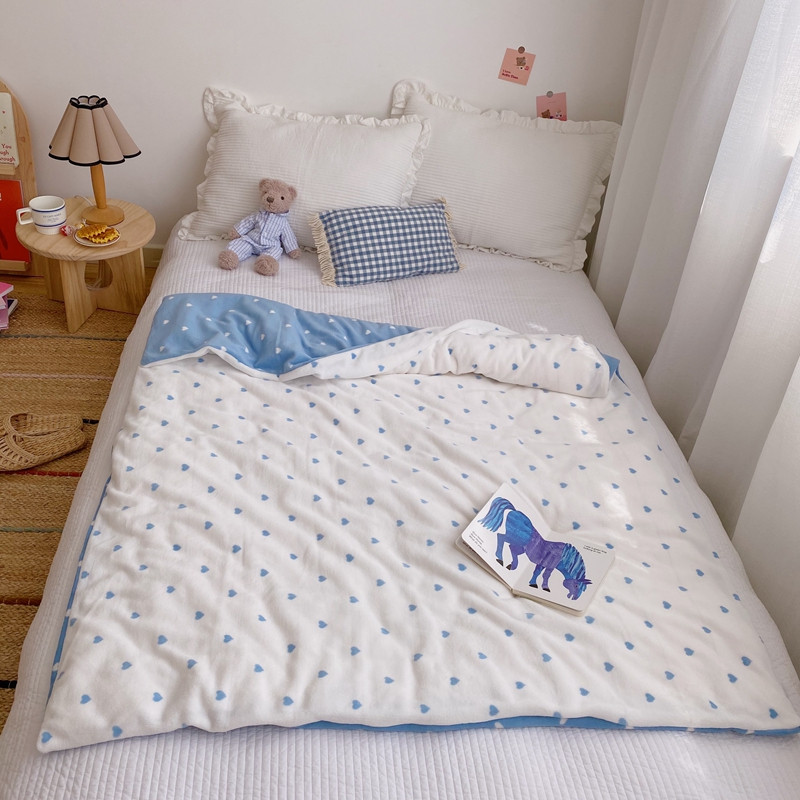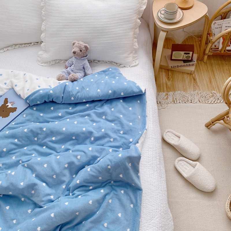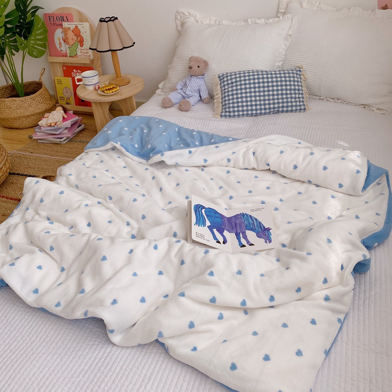 商品名称:星期八2020新款双层宝宝绒盖毯被毯子毛毯实拍图 爱心蓝