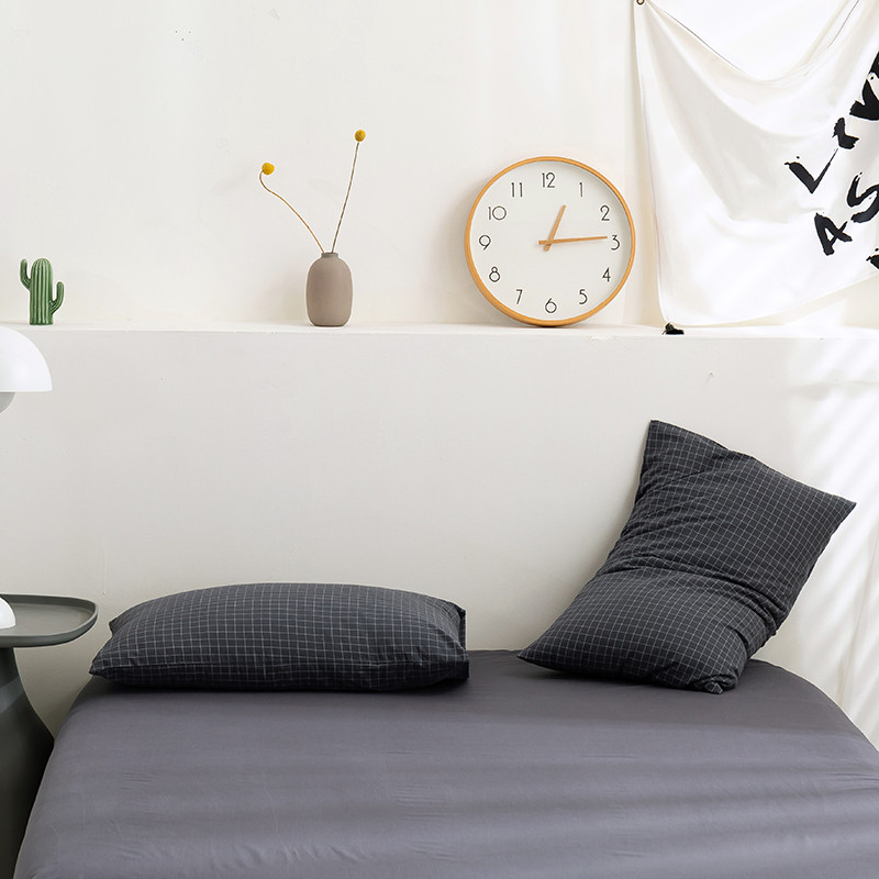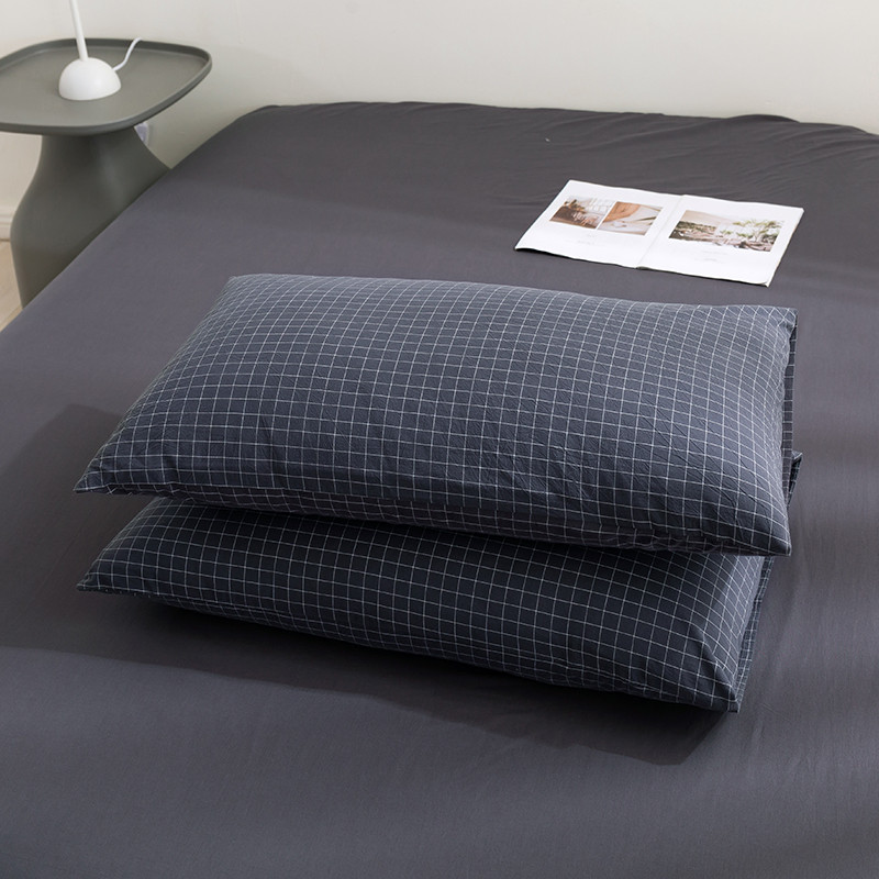 简色坊 2023新款全棉水洗棉单品枕套一只 条格-灰
