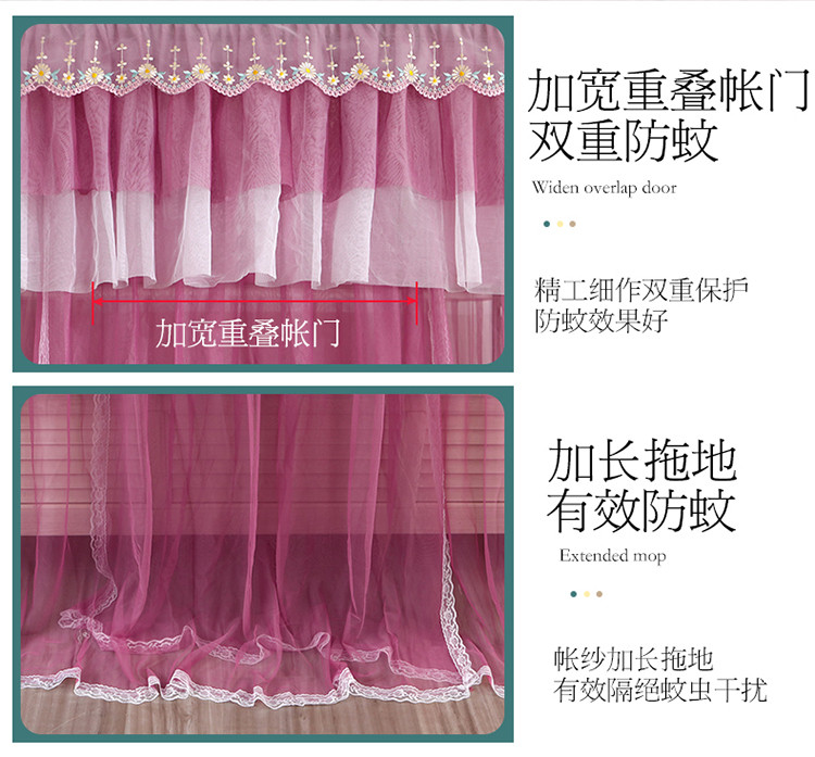 (总)新太阳 2022新款碎花学生床帘蚊帐,繁花似锦-粉玉,繁花似锦-柠檬黄