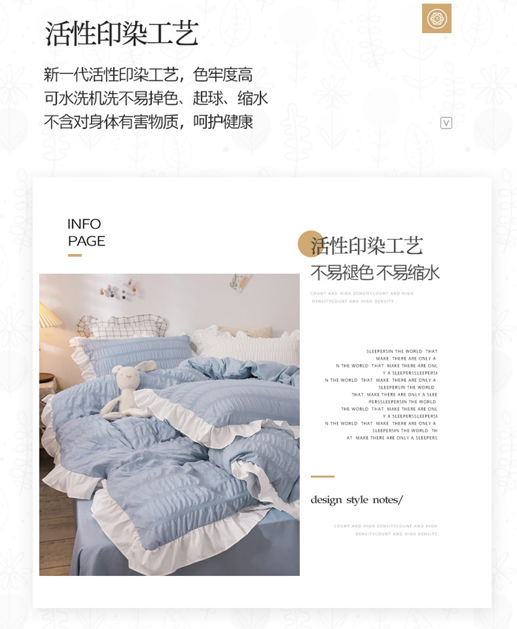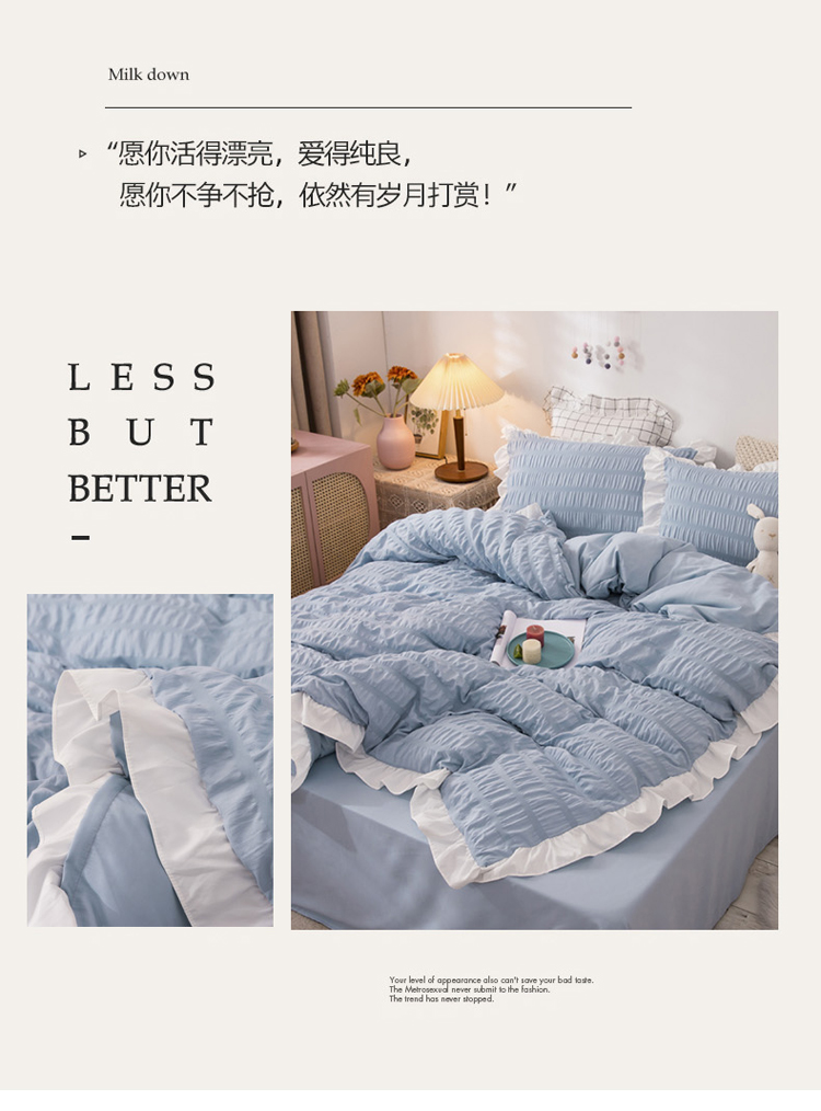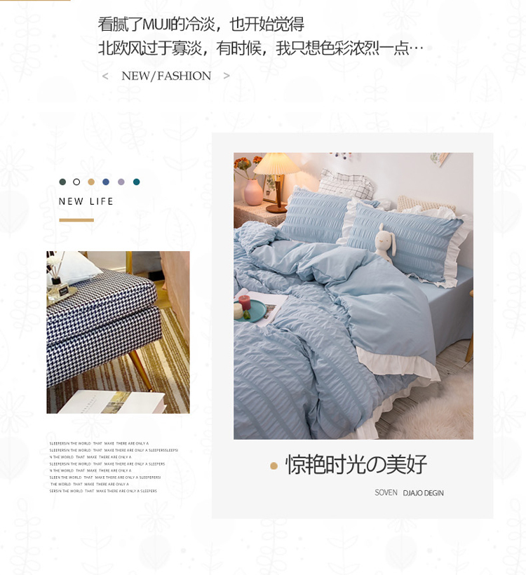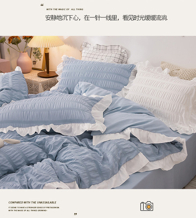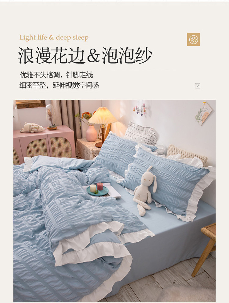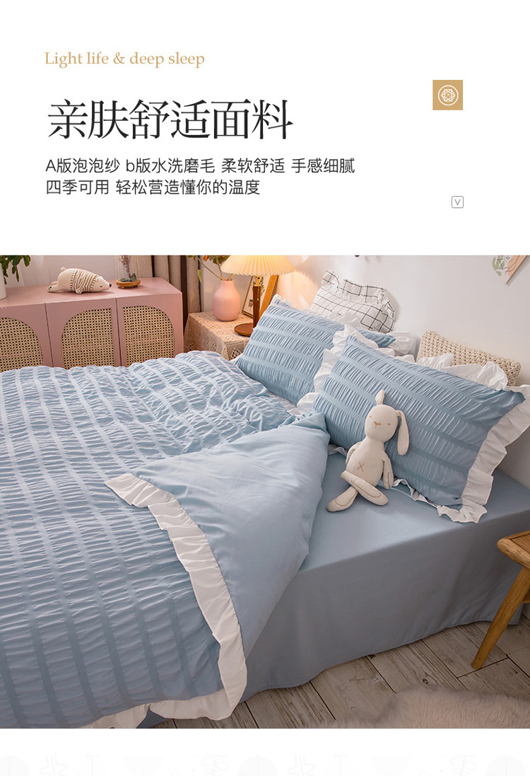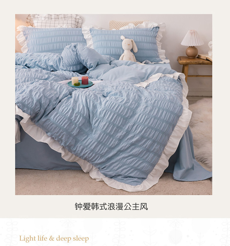 当前位置: 91家纺网 > 商品网购 > 床品套件 > 四件套 > 水洗棉四件套 > 逸尚阁 2021新款泡泡纱四件套 宁静蓝