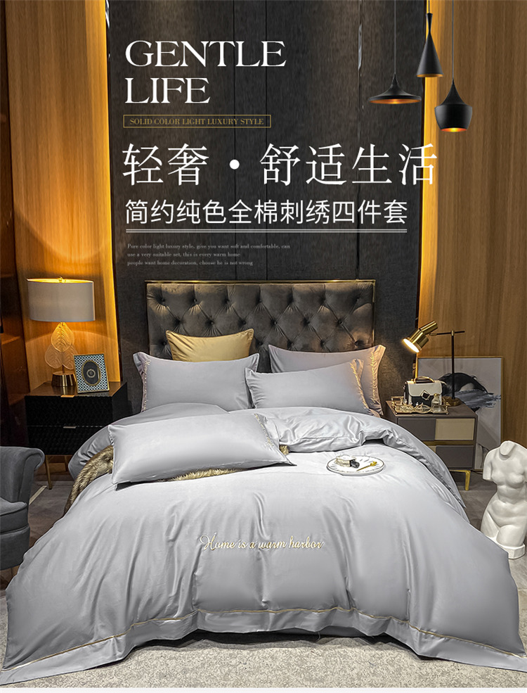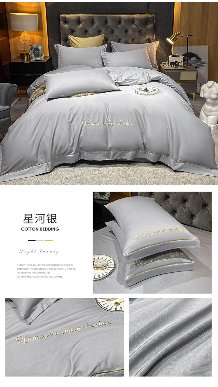 拼社40s贡缎长绒棉全棉四件套轻奢纯棉星河银