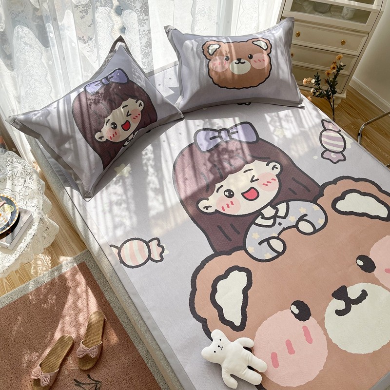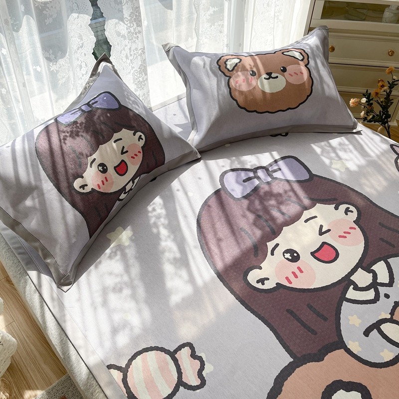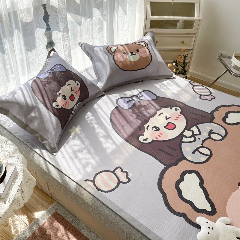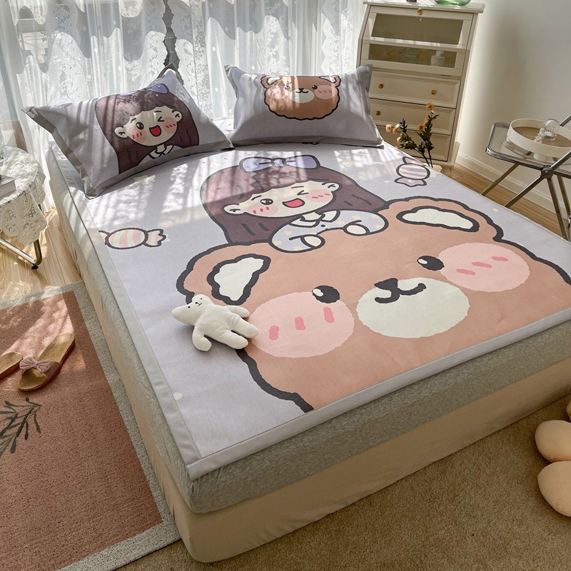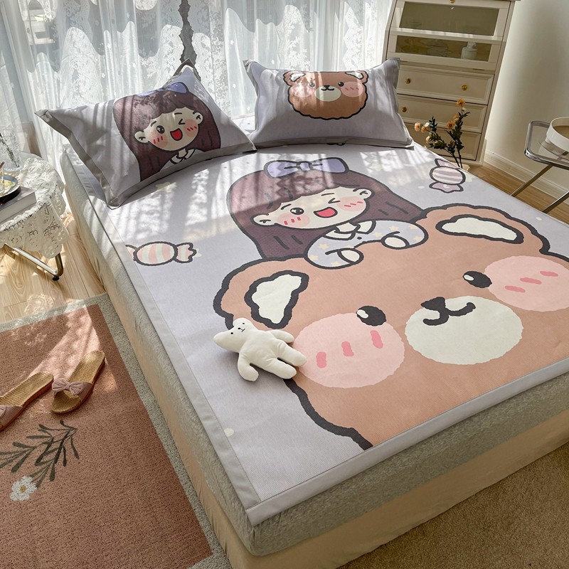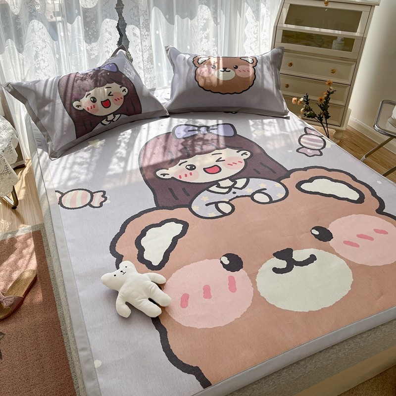 商品名称:慕尚 2025新款卡通宽边大版冰丝席 小熊少女
