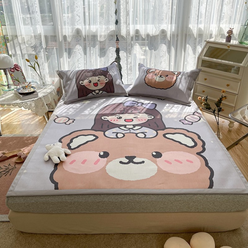 慕尚 2025新款卡通宽边大版冰丝席 小熊少女