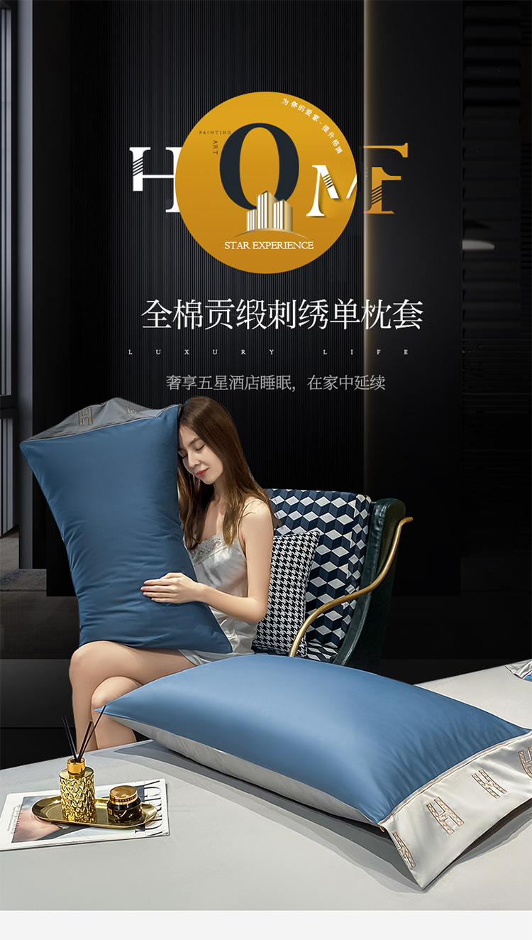 • 91家纺网 家纺一手货源 找家纺 蓝米卡夫 2021新款艾迪&卡夫单枕套 艾迪-宾利蓝+银灰
