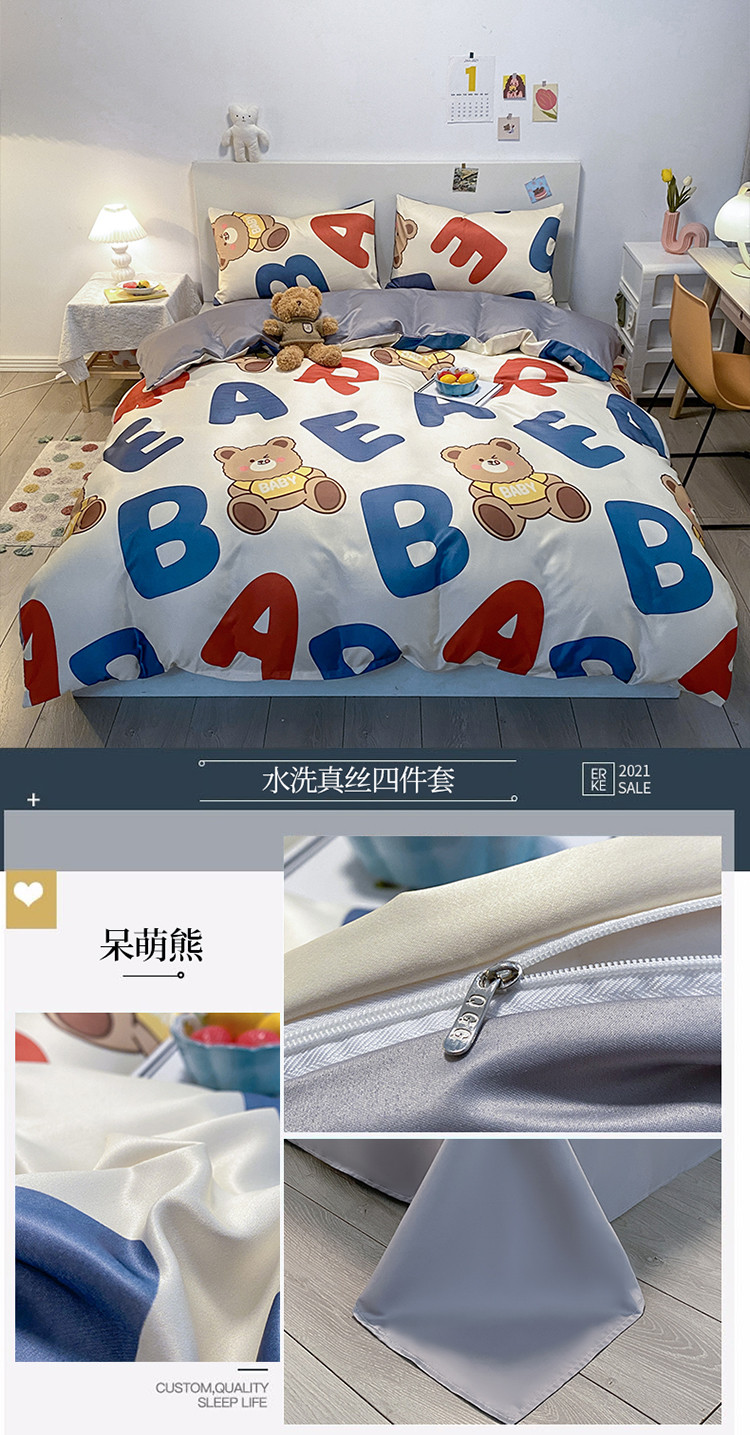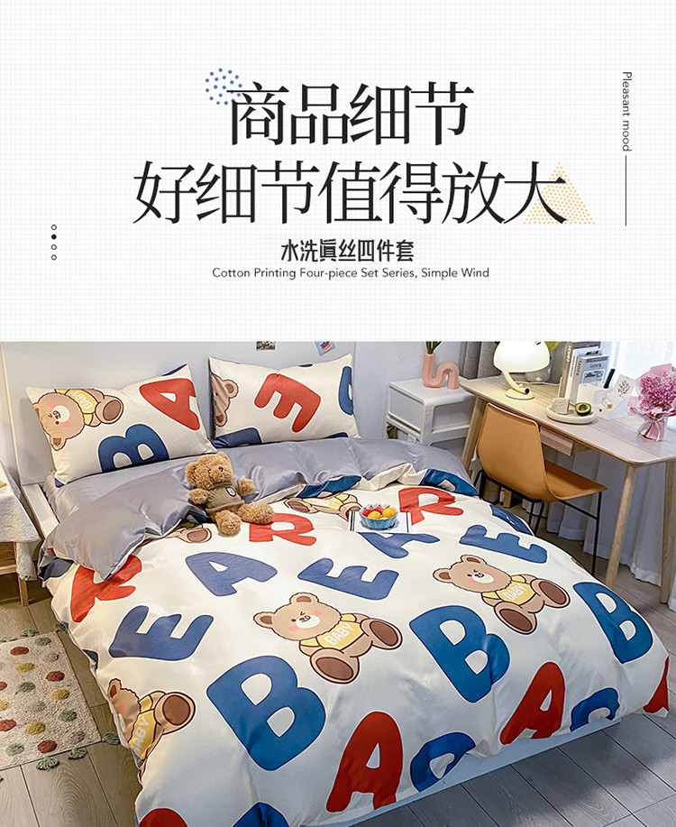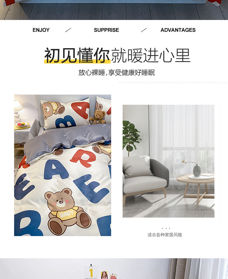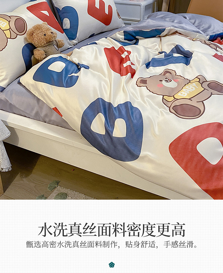 商品名称:琪格格纺织 2022新款水洗真丝印花单被套 呆萌熊