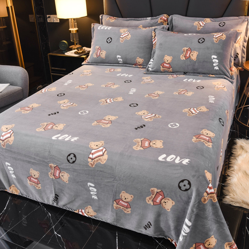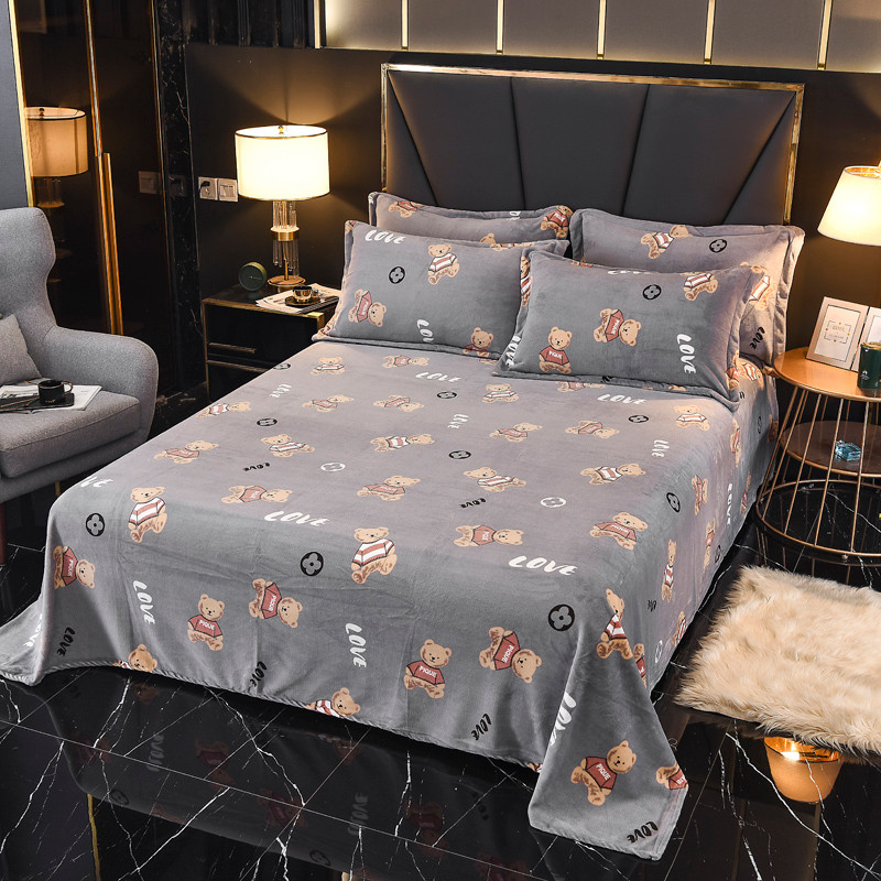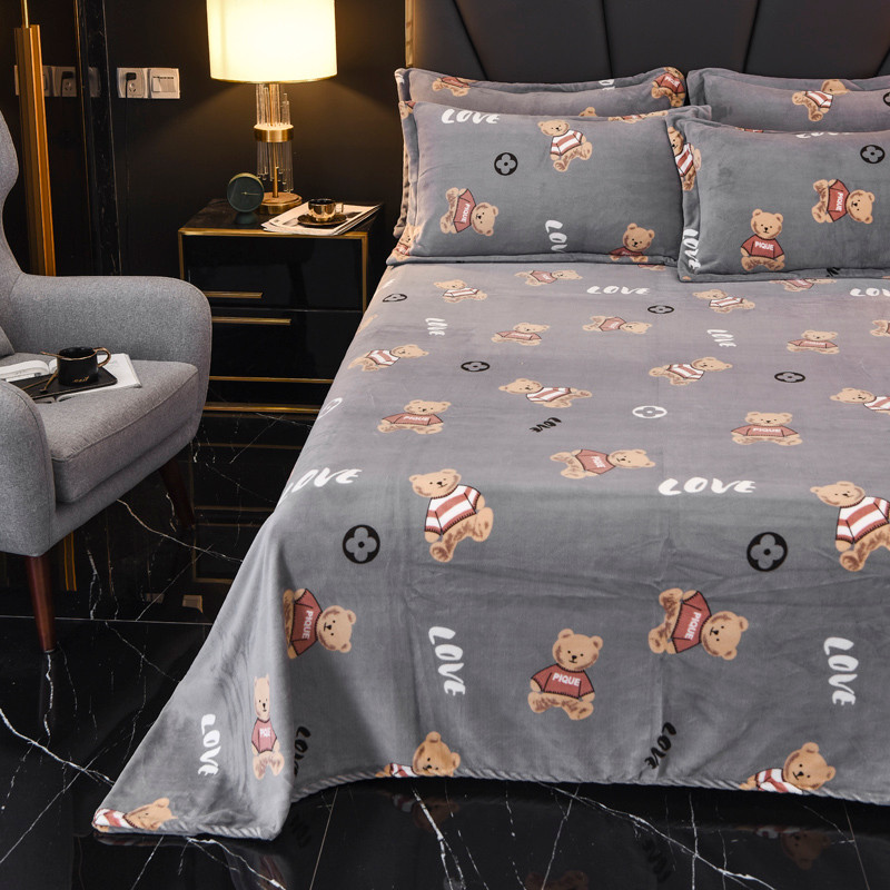 锦罗绣 2021新款牛奶绒印花单品床单 灰底小熊