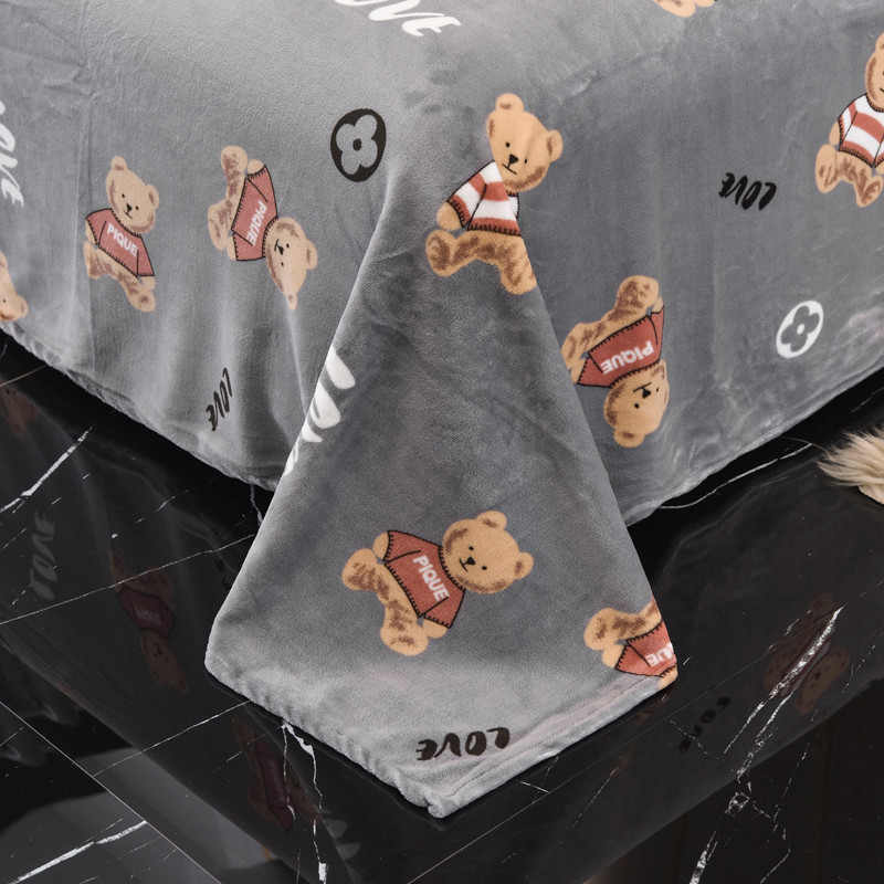 商品名称:锦罗绣 2021新款牛奶绒印花单品床单 灰底小熊
