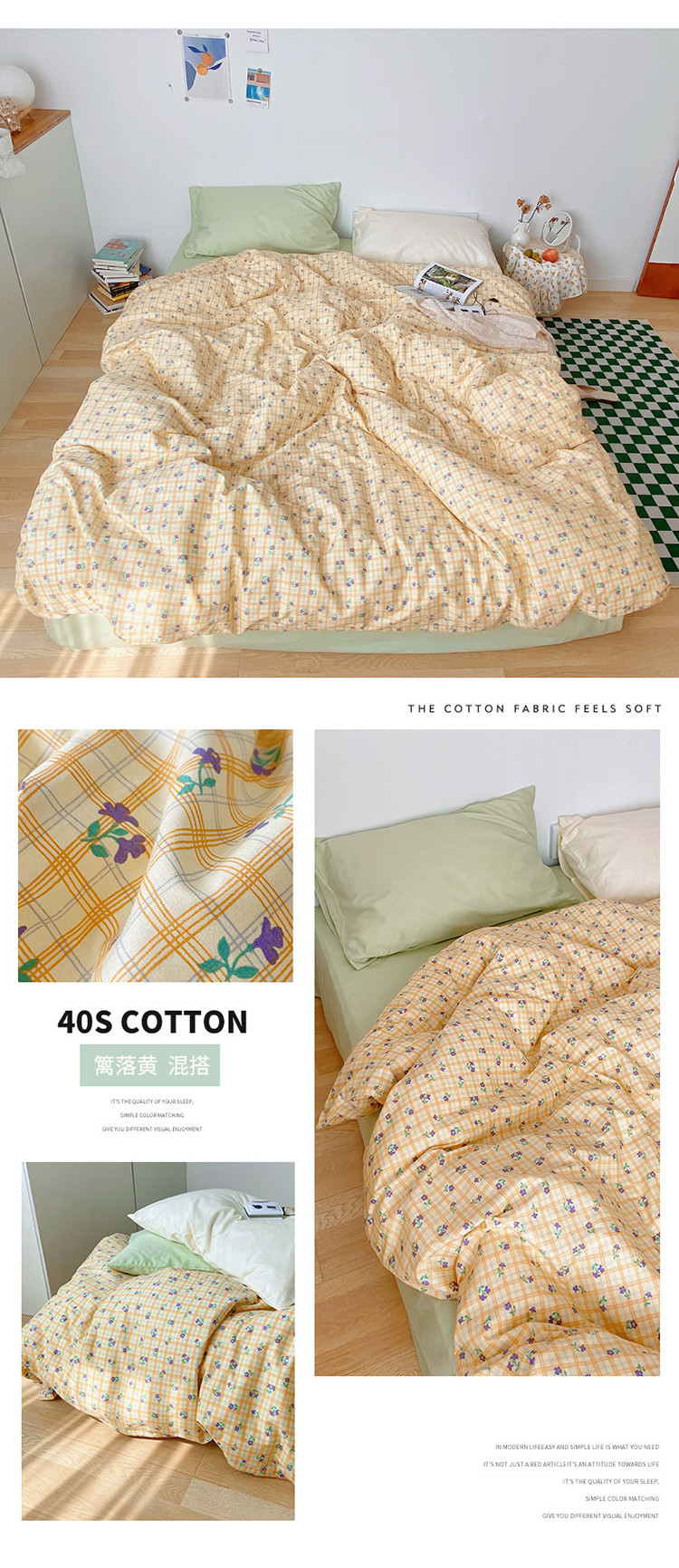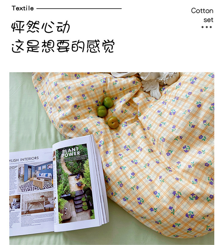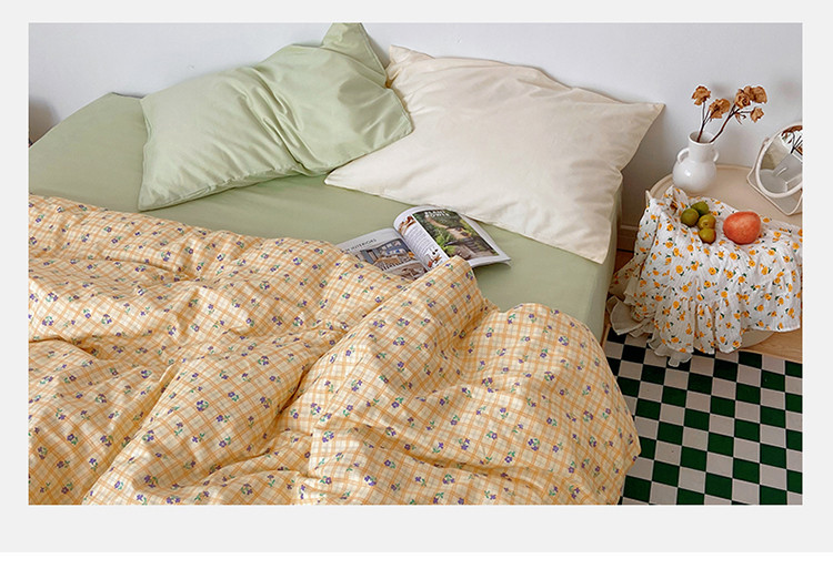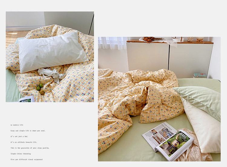 当前位置: 91家纺网 > 商品网购 > 床品套件 > 四件套 > 全棉普通四件套 > 尺素 2021新款韩国ins风清新混搭四件套 篱落黄混搭