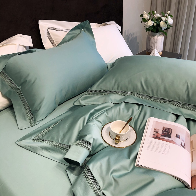 商品名称:太古汇 2021新款澳棉镂空四件套 摩登-玛瑙绿