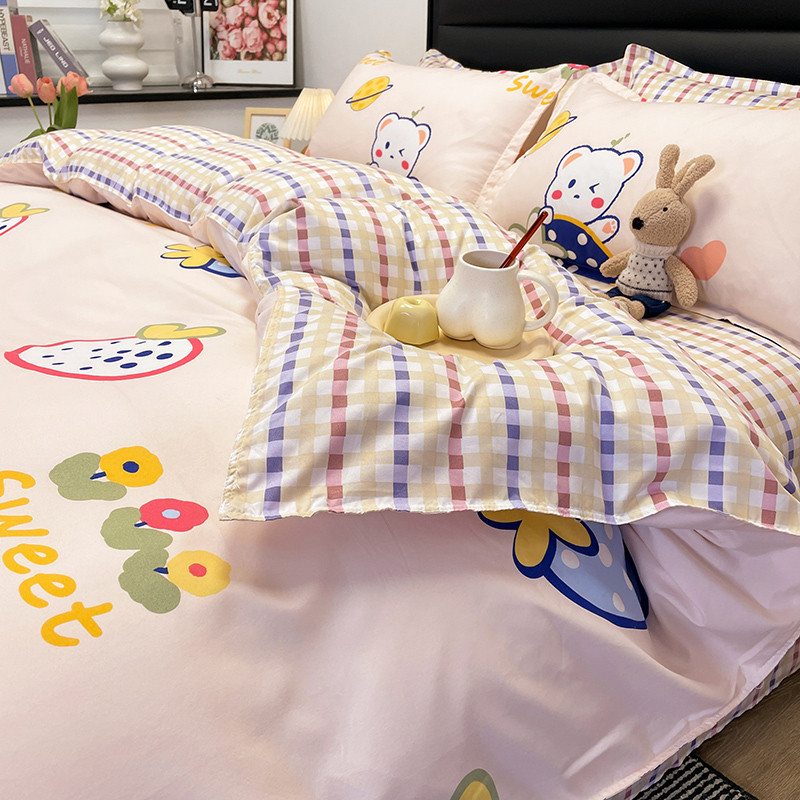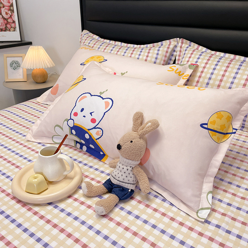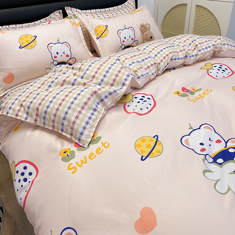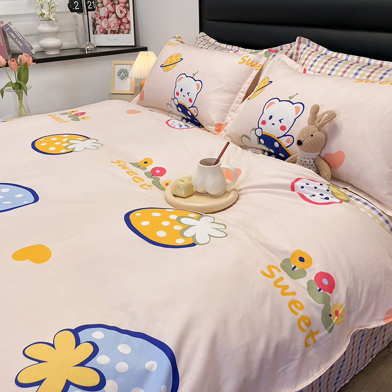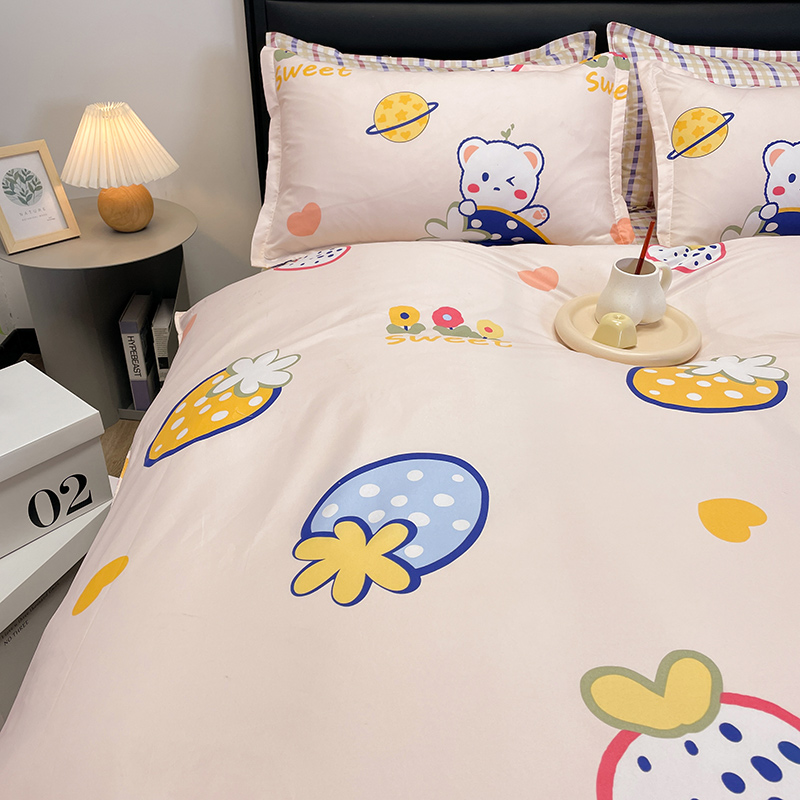 维娜斯家纺 2022新款芦荟棉四件套 草莓熊米黄
